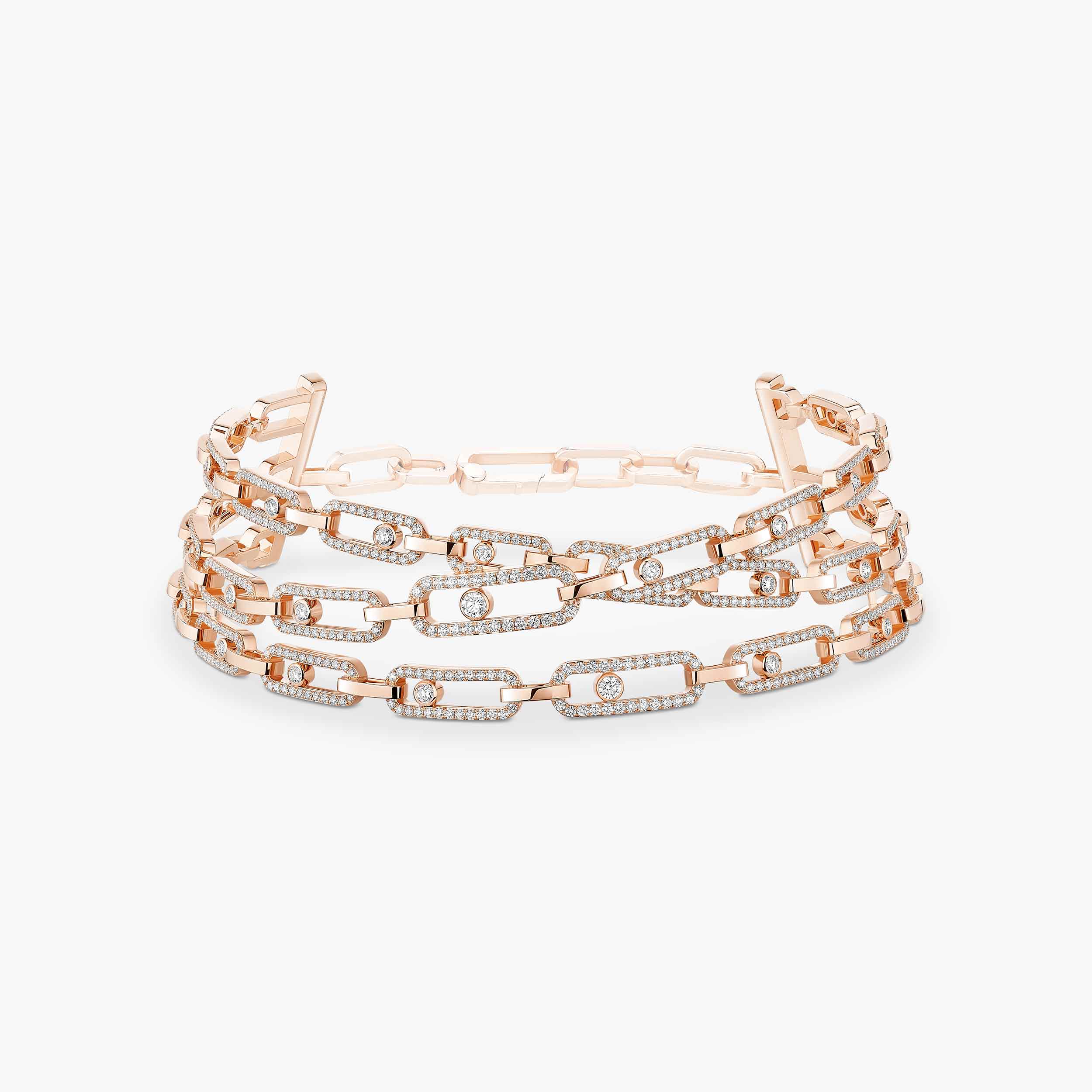 يجسد عقد Move Link ذو الصفوف الثلاثة رؤية فنية معاصرة تمزج بين الإبداع الهندسي والحرفية الرفيعة في دار ميسيكا Messika، لتقدّم قطعة استثنائية تنبض بالحيوية والضوء، صُمم العقد الذي يأتي بتصميم جنزير من الذهب الوردي المتألّق، ورصع بأحجار ألماس مرصّعة بإتقان بالغ، لتخلق تأثيرات نحتية ساحرة تعكس إشراقة لا تُقاوَم.