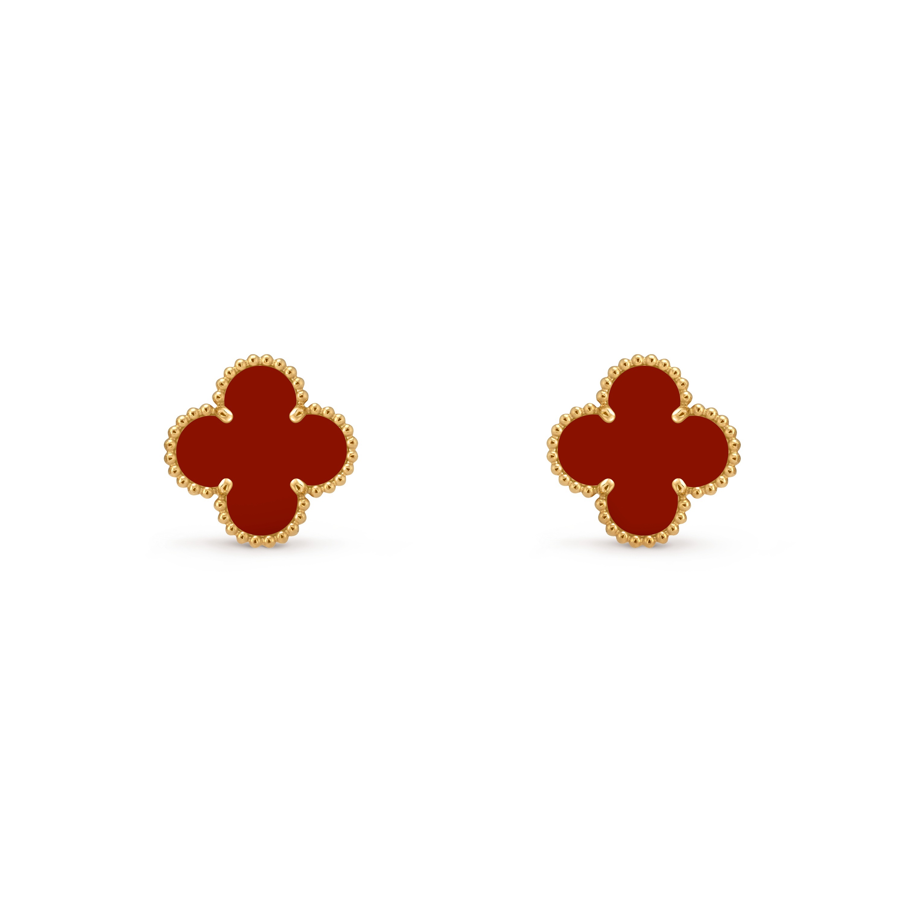 كذلك يمكنك اعتماد أقراط فينتاج ألامبرا من فان كليف أند آربلز، الأقراط تعتمد على العقيق الأحمر ومشغولة من الذهب الأصفر عيار 18 قيراطاً.