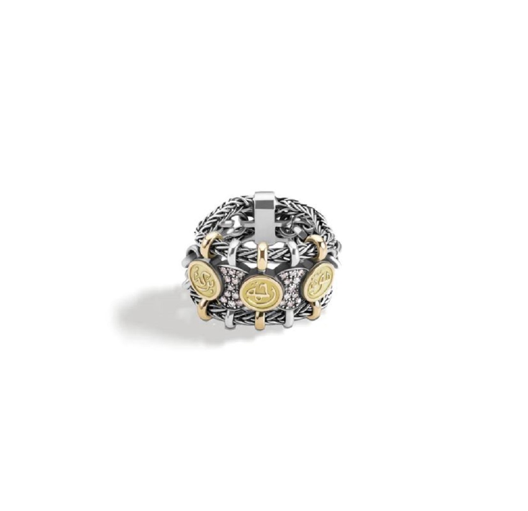 يجسد خاتم Blessings Chain Ring من مجموعة El Nur لدى دار عزة فهمي Azza Fahmy روح الزخارف الإسلامية التي تتألق بشكل خاص خلال شهر رمضان، حيث تكتسب الكلمات معاني أعمق وتصبح التفاصيل محمّلة بالدلالات الروحانية.