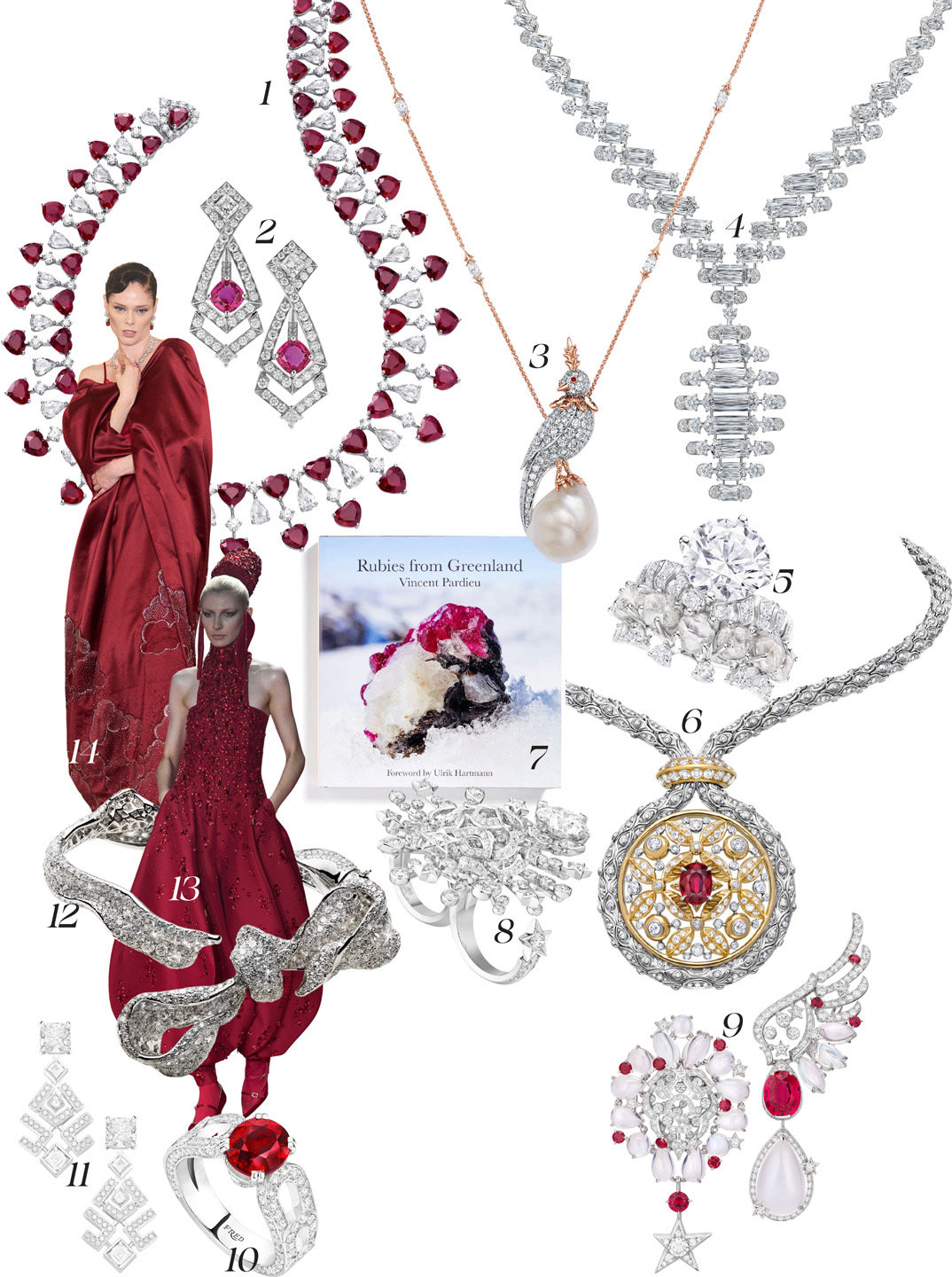 الماس والياقوت الأحمر، رقصة فخامة مدموغة بتوقيع أرقى الدور. في عالم القطع الفريدة، تتصدر Cartier المشهد بتصاميم آسرة، تقابلها دار Boucheron بابتكارات تحاكي ركائز الدار الأساسية، من مجوهرات الكتف وصولا إلى التصميم الغرافيكي المستوحى من ساحة فاندوم.