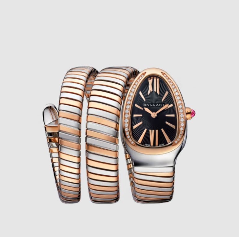 لا يمكن الحديث عن الساعات الفاخرة المناسبة للهدايا في يوم الأم دون ذكر ساعة Serpenti Tubogas من دار بولغاري Bvlgari، فهي من أكثر التصاميم الأيقونية التي تعكس أسلوب الدار الجريء والمميز، حيث يجمع هذا التصميم بين رمز الأفعى الشهير لدى بولغاري وتقنية Tubogas المرنة التي تمنح السوار شكلاً حلزونياً يلتف حول المعصم بأناقة لافتة.