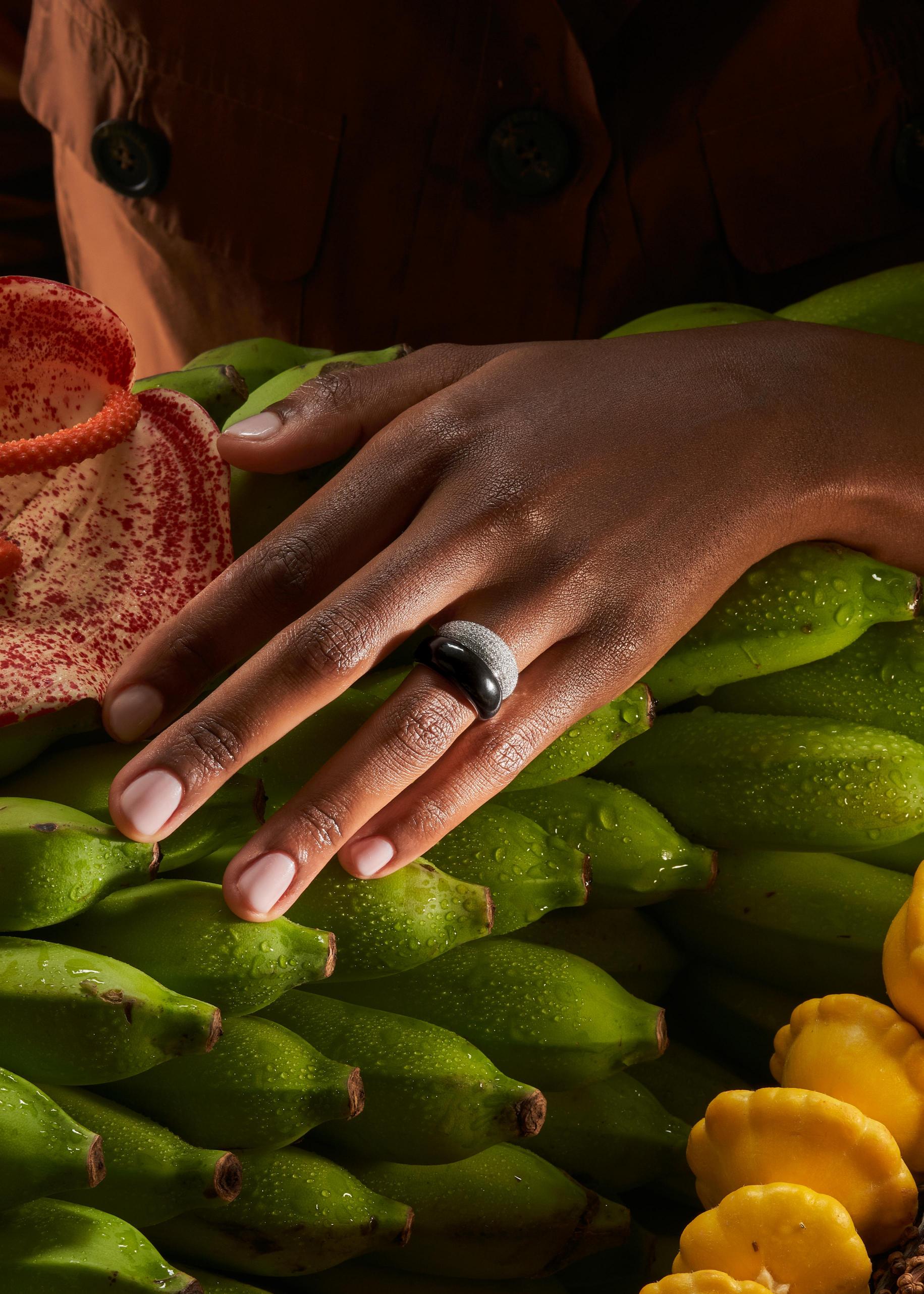 لطالما كنت مفتونة بعمق الأحجار الكريمة وقوتها البصرية، ولا سيما حجر الأونيكس الأسود الذي يعكس إحساساً بالثبات والتركيز. لذلك صممت قطعاً لا ترتبط بالصيحات الموسمية، بل يمكن ارتداؤها في أي وقت.