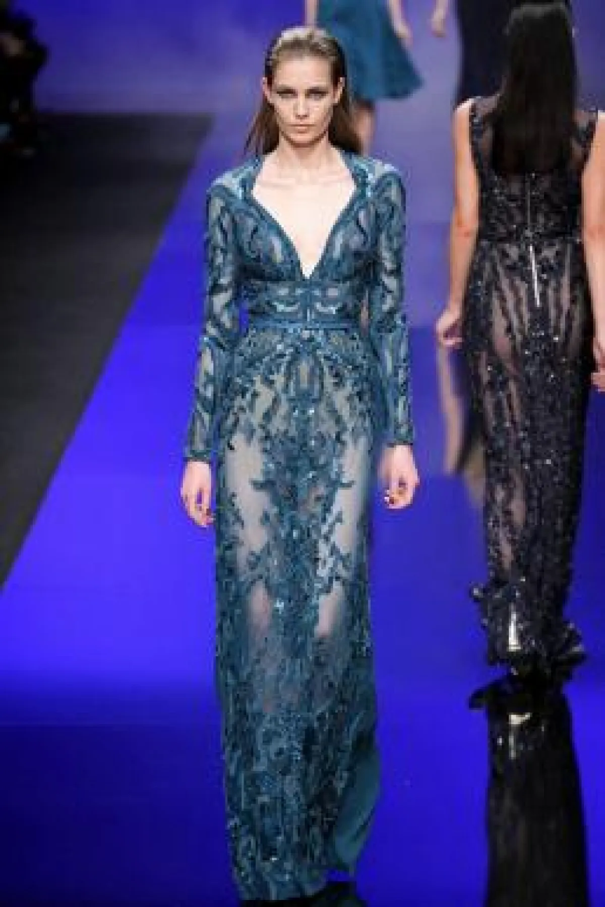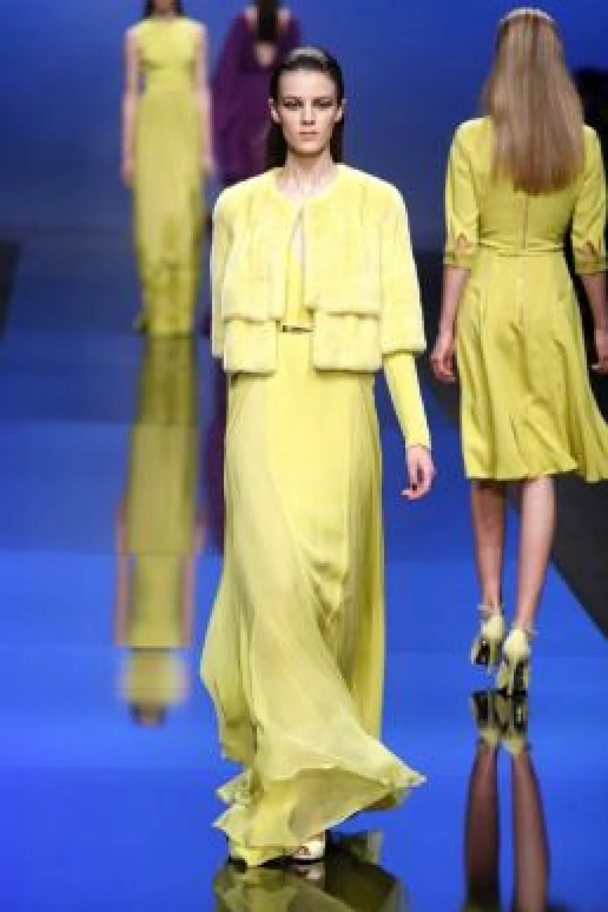 من جانبه، قدّم المصمّم اللبنانيّ العالميّ "إيلي صعب" مجموعة هادئة ورائقة، تجمع بين الرّقة والشفافية من جهة، والأنوثة السّاحرة من جهة أخرى. وقد أراد المصمّم أن يُرضي في مجموعته هذه ذوق السيّدة الواثقة من نفسها، من خلال تقديم الألبسة النهاريّة الأنيقة وفساتين السّهرة ذات اللمسات الأنثويّة الحالمة. وقد أكّد المصمّم في ثيابه على دقّة التفاصيل وانسيابيّة الخطوط ورقة الأنامل الماهرة التي زيّنت الثياب بالتطريزات والتزيينات، حيث تداخلت فيها الخيوط الحريريّة الملوّنة، وحوّلت كلّ قطعة إلى لوحة فنيّة ثمينة. وقد تميّزت المجموعة بأنسجتها وخاماتها المترفة، مثل الساتان والموهير والمخمل والكشمير والدانتيلا والشيفون. وكان "صعب" بارعاً في اللعب على مزاج الأقمشة، جامعاً الشفّاف بالسميك، والناعم بالقويّ، بطريقة تحمل بصمة المصمّم بامتياز. أمّا الألوان فقد أطلّت بتدرّج الأسود والأزرق الداكن، فالأرجوانيّ، لتنتقل إلى الأصفر والأبيض، مع ومضات من الألوان البرّاقة.