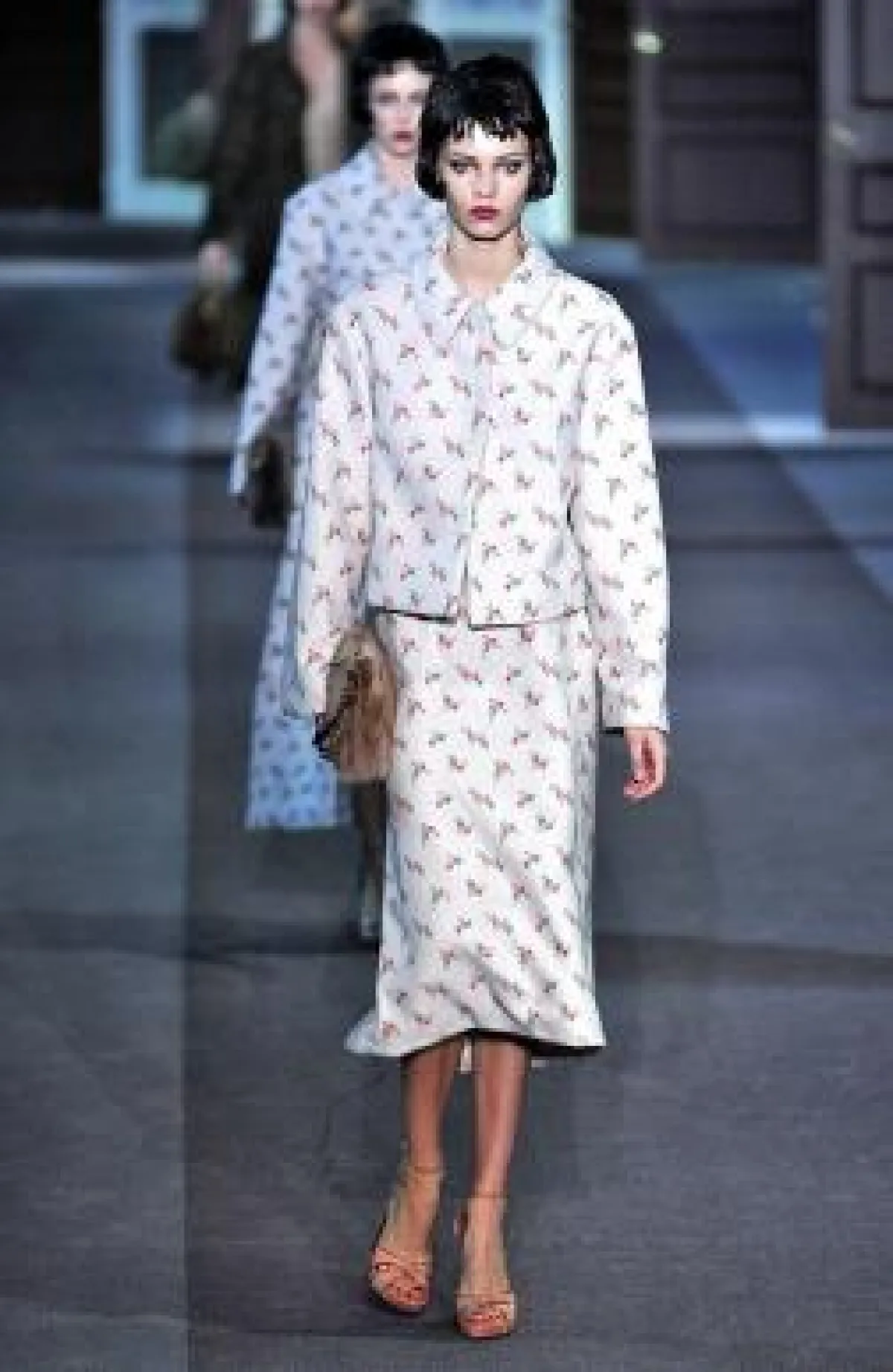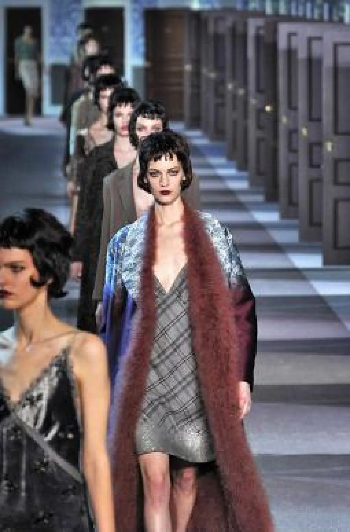 وفي اللحظات الأولى، أرسل "جاكوبس" عارضاته على شكل مجاميع تخرج من عدد من الأبواب الجانبيّة، وهن يلبسن الثياب المزيّنة بالخرز والفرو وريش النعام. وقد ذكرتنا بعض الطلات بالنّجمة "شيرلي ماكلين" في فيلم" The Apartment"، فيما نحت طلات أخرى إلى النّجمة إليزابيث تايلور في فيلم "Butterfield 8".