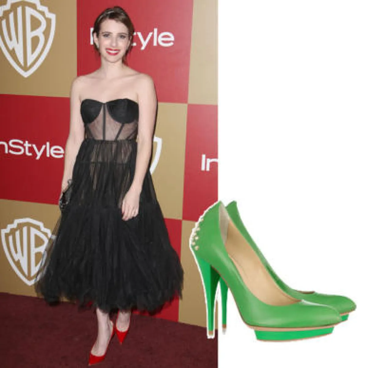 لا يجب أن تخلو خزانة أيّ سيّدة من حذاء بلون مشرق. ارتديه مع فستانك الأسود القصير لتحصلي على إطلالة عصريّة جذّابة، مثل إيما روبرتس.