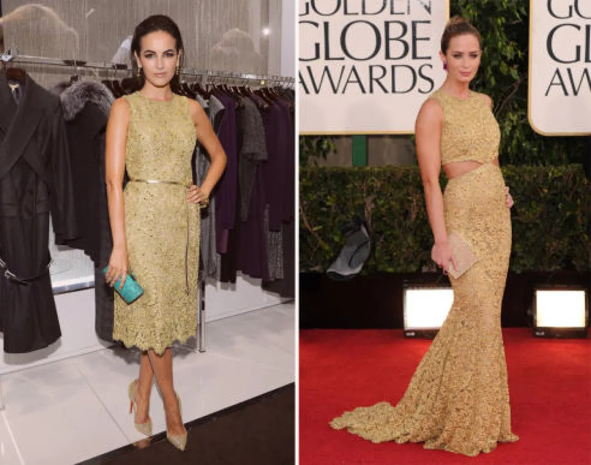 في هذه المرّة، اختلف الموضوع نوعاً ما، فلم يتّفق كلٌّ من "كاميلا بيل" و"إيميلي بلانت" على اختيار نفس الفستان، إنّما اختارتا نفس الدانتيل الذهبيّ الرائع الذي حمل توقيع المصمّم الأمريكيّ "مايكل كورس" بتصميمين مختلفين كليّاً.