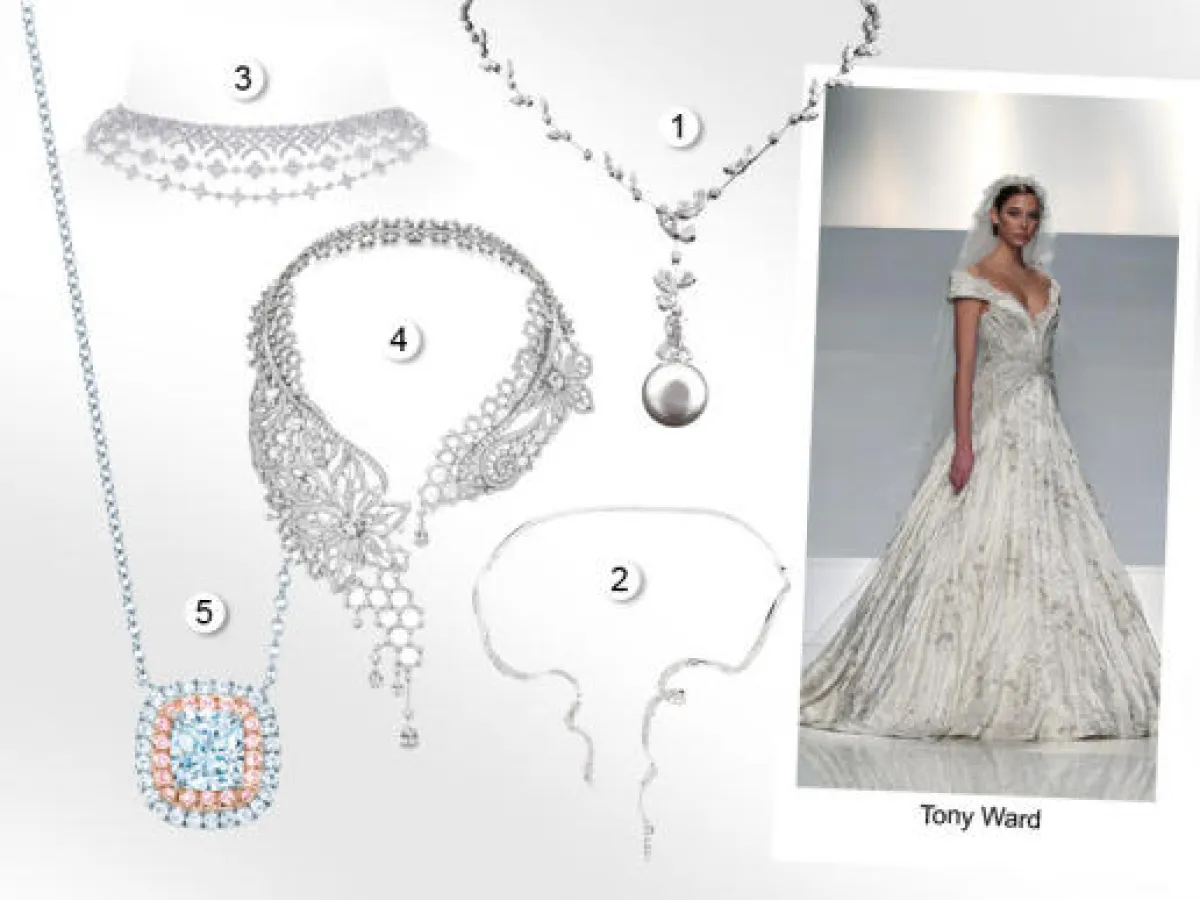 لأنك ستكونين محطّ الأنظار خلال ليلتك المنتظرة، لا يُمكن أن تطلي إلا بقلادة ماسيّة تشعّ بريقاً حول عنقك ووجهك. لذا حدّدي شكل فستانك، واختاري على أساسه العقد الذي يليق به، ولا تنسي أن يكون مرصّعاً بحبيبات من الماس، مهما كان شكله، سواء أكان قصيراً يُحدّد الرقبة أم طويلاُ، يتدلى على كامل عنقك.