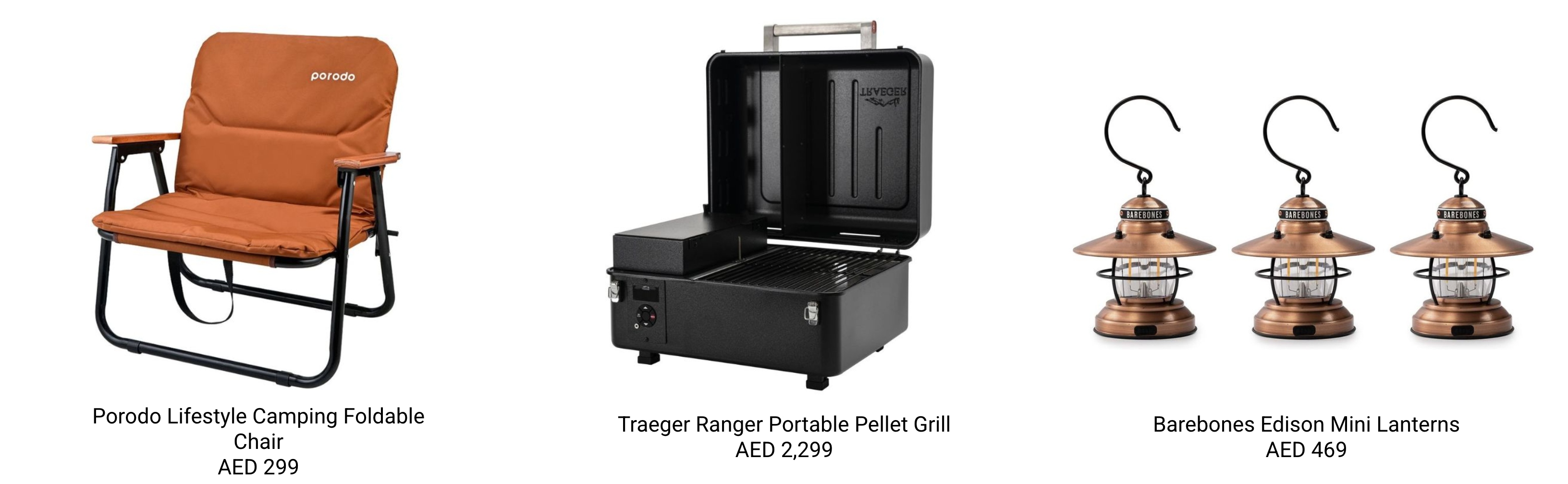 اخرج إلى الهواء الطلق، واجعل من كل أمسية رمضانية تجربة تستحقّ المشاركة مع الأحباب، فيها تطول الأحاديث، وتتحوّل اللحظات البسيطة إلى لمّات لا تُنسى. هناك مستلزمات أساسية للسهرات تحت ضوء الهلال: تفاصيل تبعث بالراحة، والطعامٍ اللذيذ، والإضاءة التي تعدل المزاج. استرخِ مع الكراسي القابلة للطي من Porodo Lifestyle Camping Foldable Chair، المصمَّمة للأمسيات الطويلة من دون المساومة على الراحة، ودَع الشواية Traeger Ranger Portable Pellet Grill تضفي نكهة لذيذة إلى مائدتك وأمسيتك بكل سهولة. وعلى طول ساعات الليل، تنثر فوانيس Barebones Edison Mini Lanterns وهجًا دافئًا وإضاءة محيطة لأجواء ولا أروع.