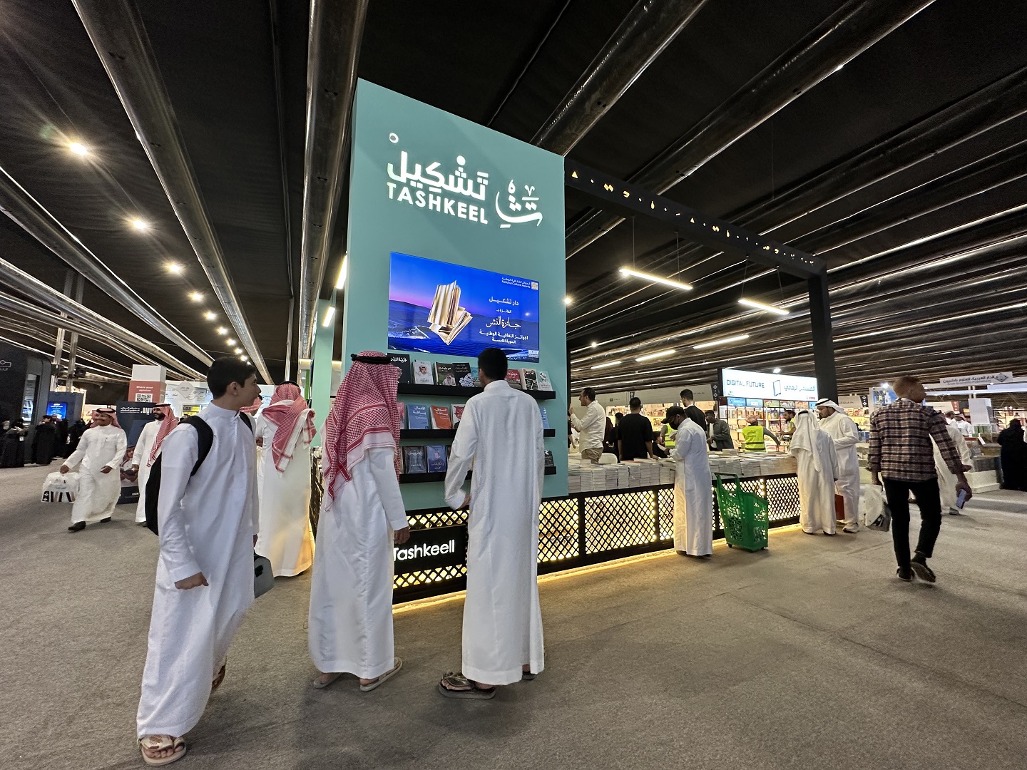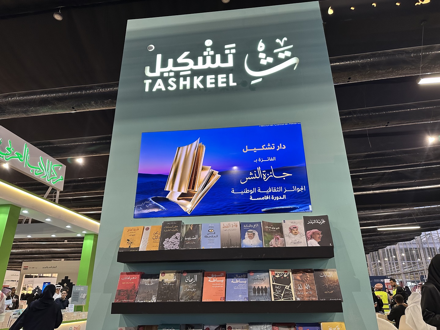 بين أجنحة الدور المشاركة، كانت لنا وقفة عند دار تشكيل، الفائزة بجائزة النشر في "الجوائز الثقافية الوطنية"، التي أقيمت خلال شهر سبتمبر الماضي برعاية ولي العهد الأمير محمد بن سلمان بن عبدالعزيز آل سعود، حيث التقينا مدير النشر في الدار؛ الكاتب والشاعر رمزي بن رحومة، إذ قال لنا: "تشكيل دار سعودية، وكل ما هو عالمي يجب أن يكون عالمياً بصيغته المحلية؛ أي أن الدار السعودية لكي تنجح وتصل إلى ربوع العربية -ولِمَ لا إلى العالمية- عليها أن تكون ناجحة محلياً".