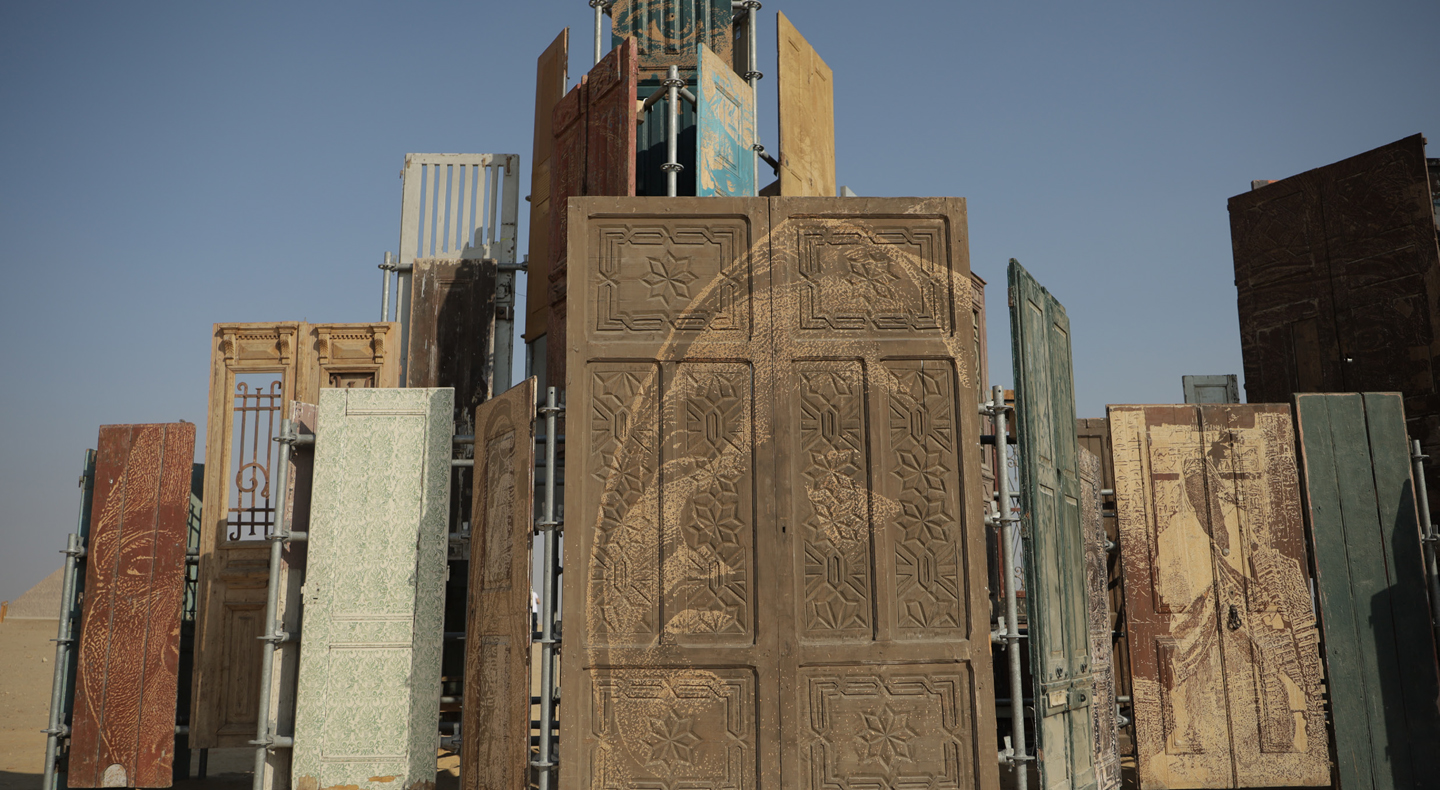 جمع الفنَّانُ البرتغالي ألكسندر فارتو Alexandre Farto، الشهيرُ بـ «فيلس» Vhils، أبواباً قديمةً ومستعملةً من أنحاءِ القاهرة، ثم أضافَ إليها لمستَه الفنيَّةَ الفريدةَ التي أسهمت في شهرته عالمياً. ويرمزُ كلُّ بابٍ مُستَخدمٍ لحقبةٍ زمنيَّةٍ، عاشتَها القاهرة، وتصفُ هذه الأبوابُ طبقاتِ الذاكرةِ الكامنةَ في تفاصيلِ الحياةِ اليوميَّةِ التي تشهدُ عليها في البيوتِ الذي تحرسها.