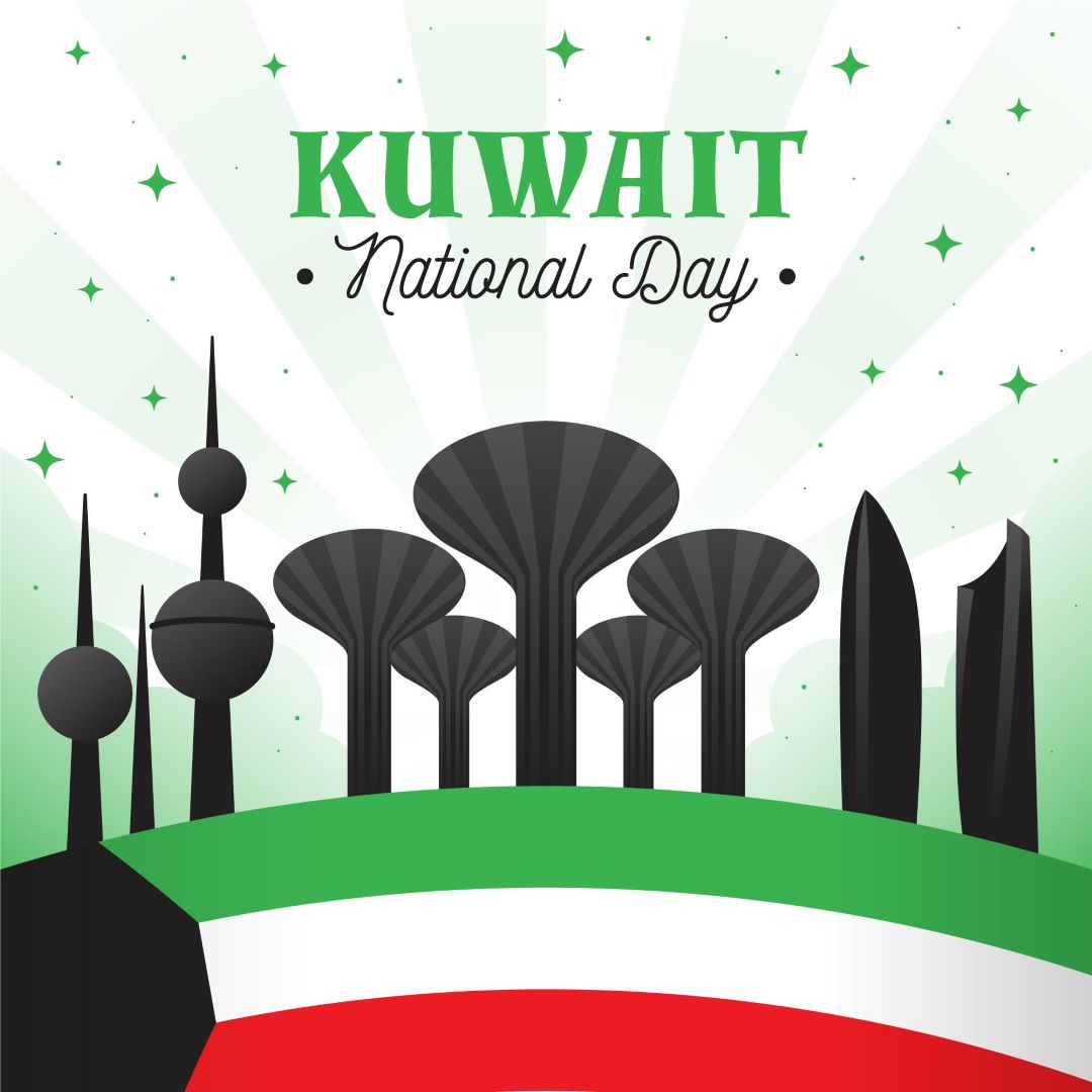 بمناسبة اليوم الوطني الكويتي، نرفع أسمى آيات التهاني والتبريكات، متمنين للكويت وشعبها دوام الأمن والازدهار. - المصدر: freepik