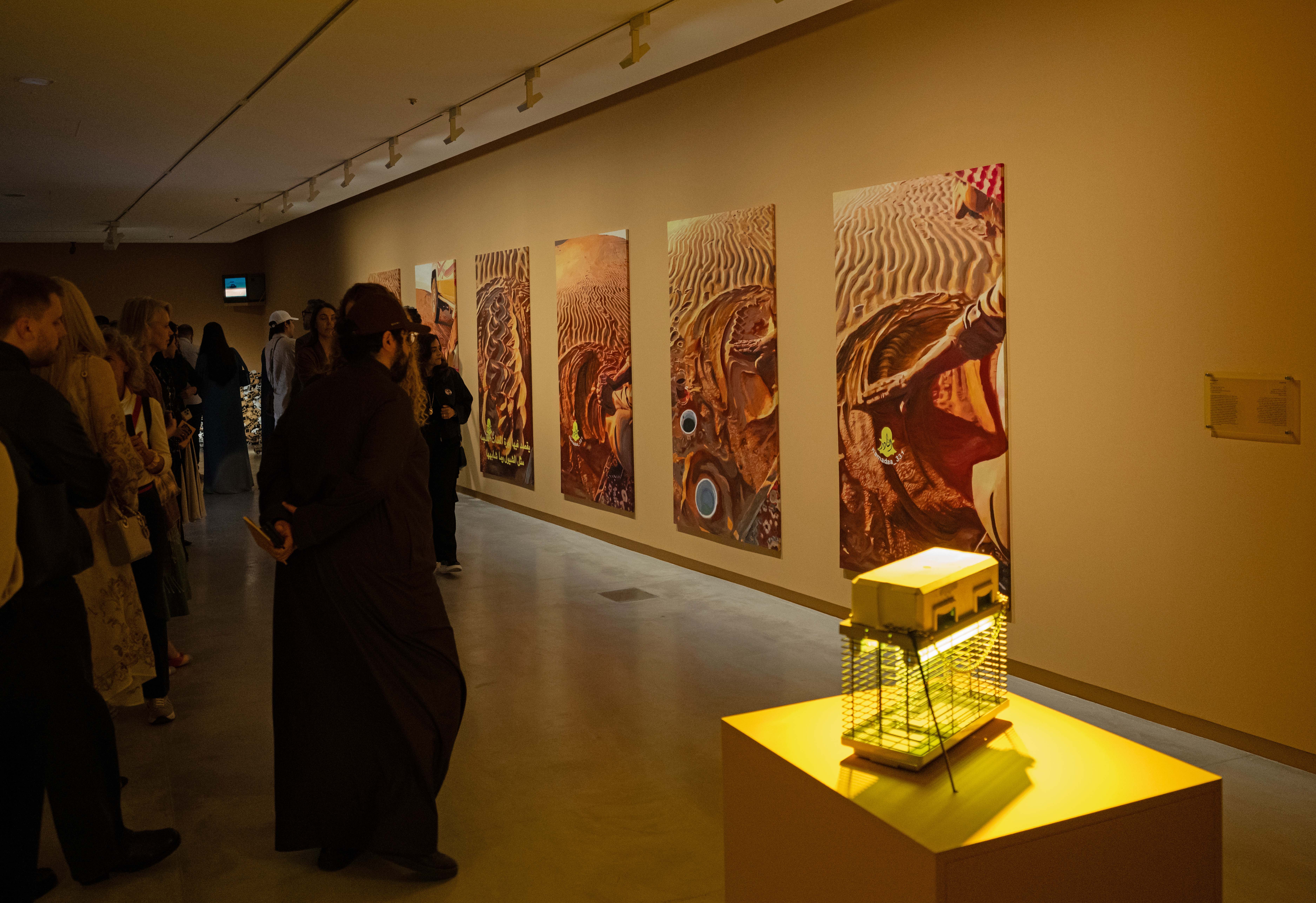 بحّارة: عمل صوتي يختتم مسار المعرض، يستند إلى نشيد «اليامال» التراثي، دامجاً اللازمة الغنائية مع إيقاع المد والجزر؛ ليعبر عن الحنين والأمل، والتوق الدائم للمستقبل.