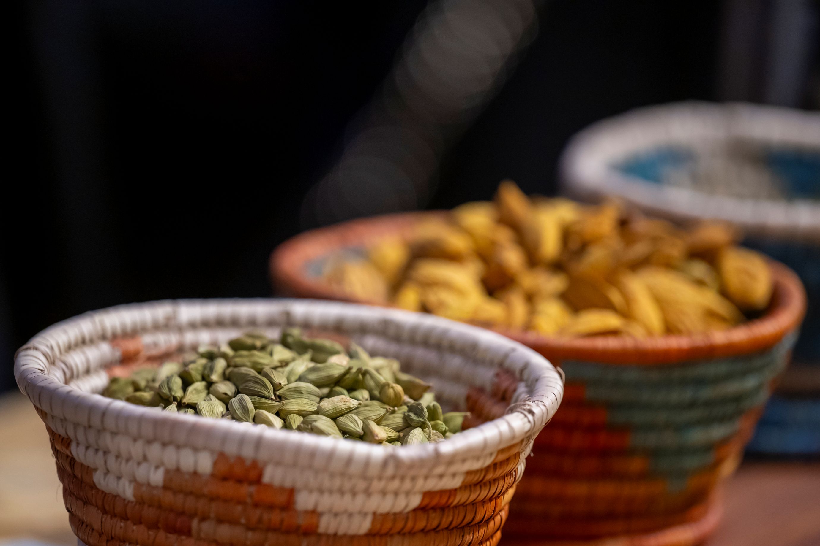 تتعدَّدُ التوابلُ والمنكِّهاتُ المضافةُ إلى القهوة، ومنها الهيلُ، والزعفرانُ، والزنجبيلُ، والقرنفل، وكذلك تختلفُ الكميَّةُ المضافةُ من منطقةٍ إلى أخرى، إذ تتميَّزُ القهوةُ الجنوبيَّةُ بكثرةِ إضافةِ الزنجبيلِ والقرفة، وفي المنطقةِ الغربيَّةِ تتصدَّرُ المستكة هذه المنكِّهات، أمَّا في الشرقيَّة فيُستَخدم الزعفرانُ والهيل. وفي هذا الجانبِ، يُوضح المهندس عبدالله: "لابد من الحذرِ عند إضافةِ هذه التوابلِ إلى القهوة وذلك بأن تُضاف بكميَّةٍ معيَّنةٍ، وعند درجةِ حرارةٍ محدَّدةٍ، فهي من التوابلِ النفَّاذة. كذلك يجبُ الحذرُ من المبيِّضاتِ والنكهات، ومعرفةُ مصدرها، وبالنسبةِ إلى الهيل، يُفضَّل إضافتُه مباشرةً إلى القهوة المُقدَّمة للضيف، وعدمُ تخزينِ المطحون".