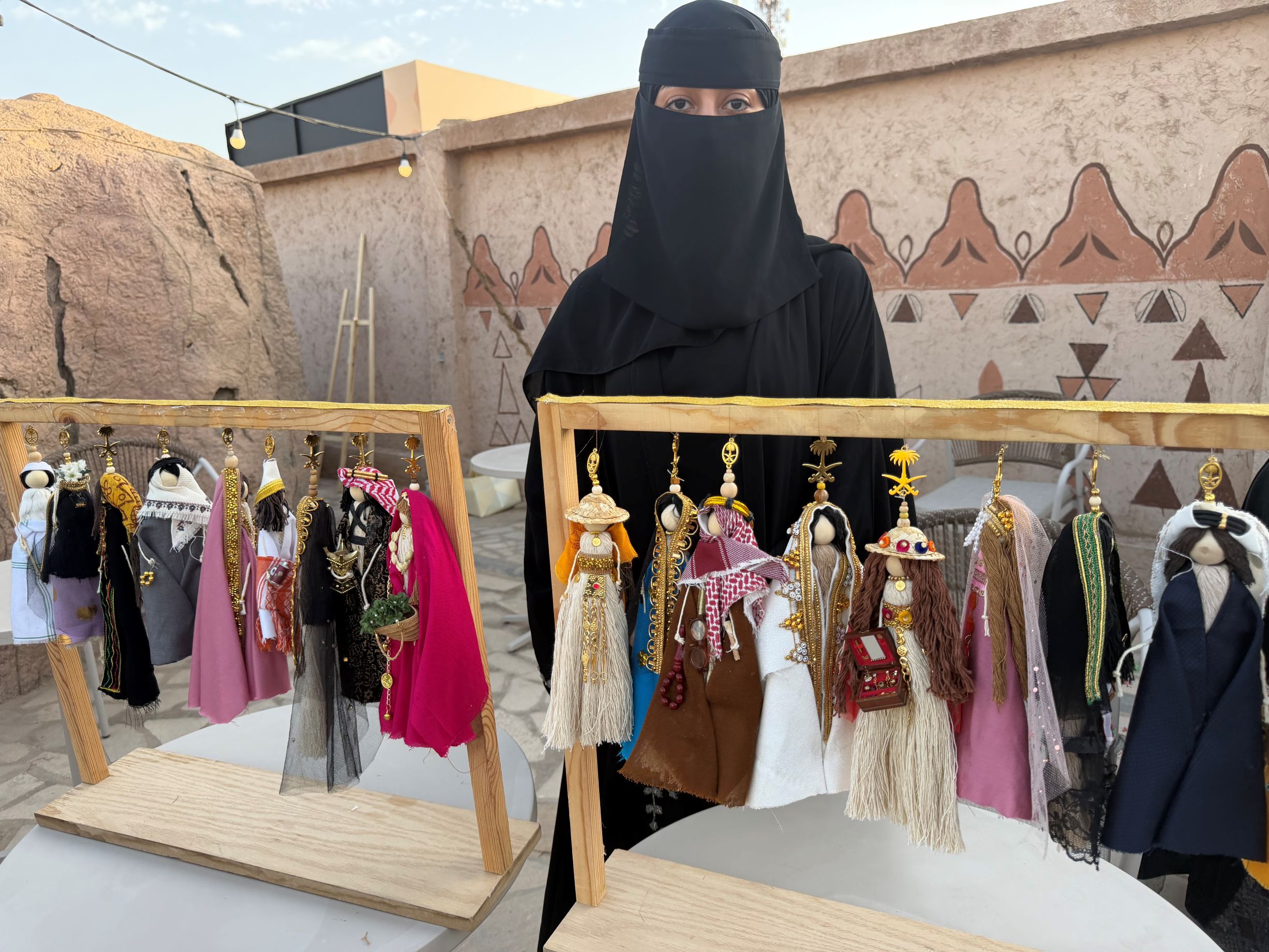 وفي مشاركة لافتة اختارت لطيفة البعيجان إبراز التراث السعودي من خلا ل مجموعة من الدُّمَى التي صُنعت يدوياً، وتحمل كل دمية في طياتها ملامح من التراث الشعبي والحرف اليدوية لمناطق السعودية المختلفة، حيث ترتدي كل دمية من الدُّمَى ثوباً تراثياً يعبِّر عن منطقة سعودية معينة وعادات وتقاليد سكانها.