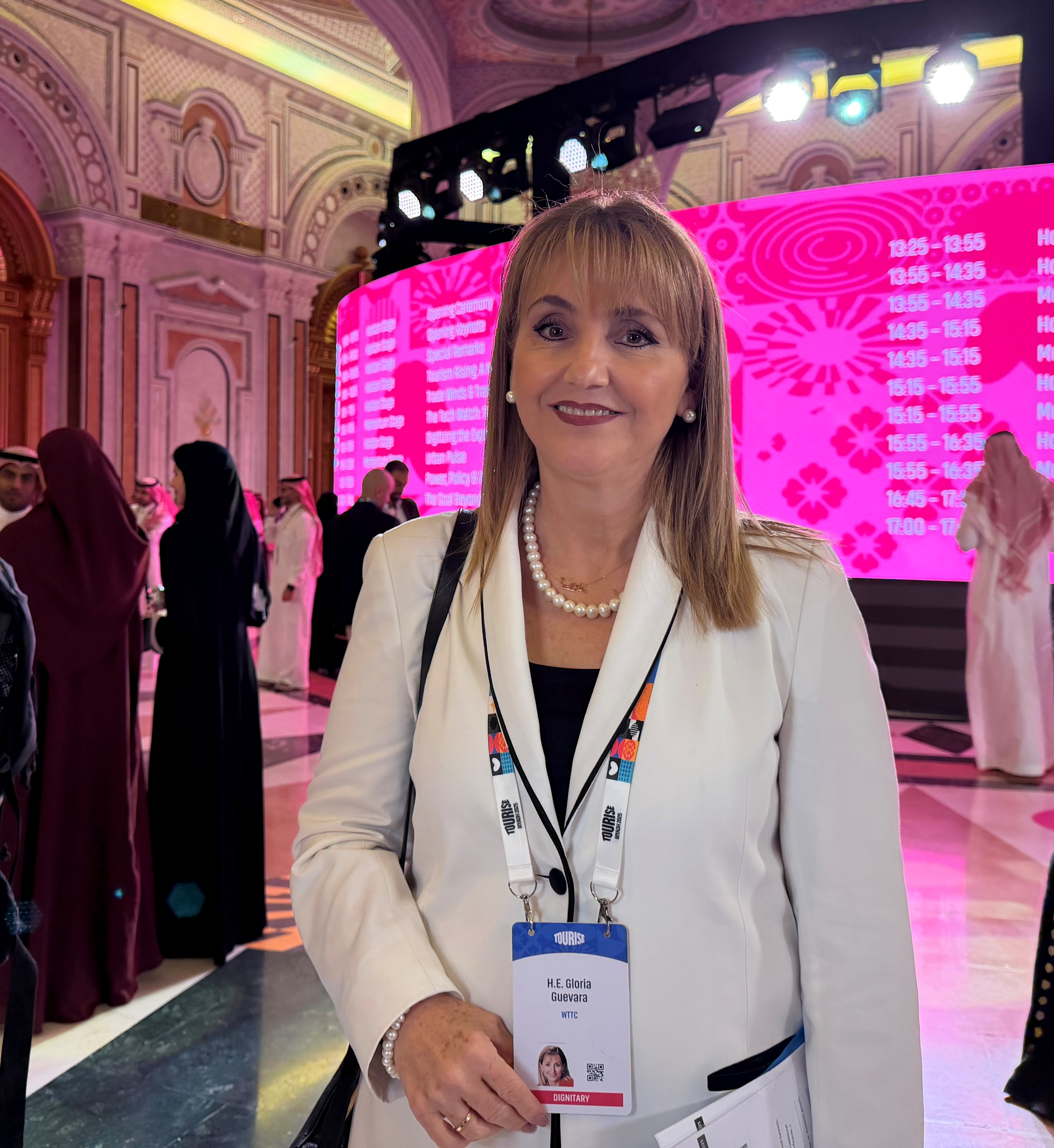 وتابعت Gloria Guevara: اعتدت أن أعيش في المملكة العربية السعودية منذ ثلاث سنوات، لذلك أنا مُطَّلعة جداً على خطط هذا البلد وفخورة جداً بكوني جزءاً من الفريق في وزارة السياحة.