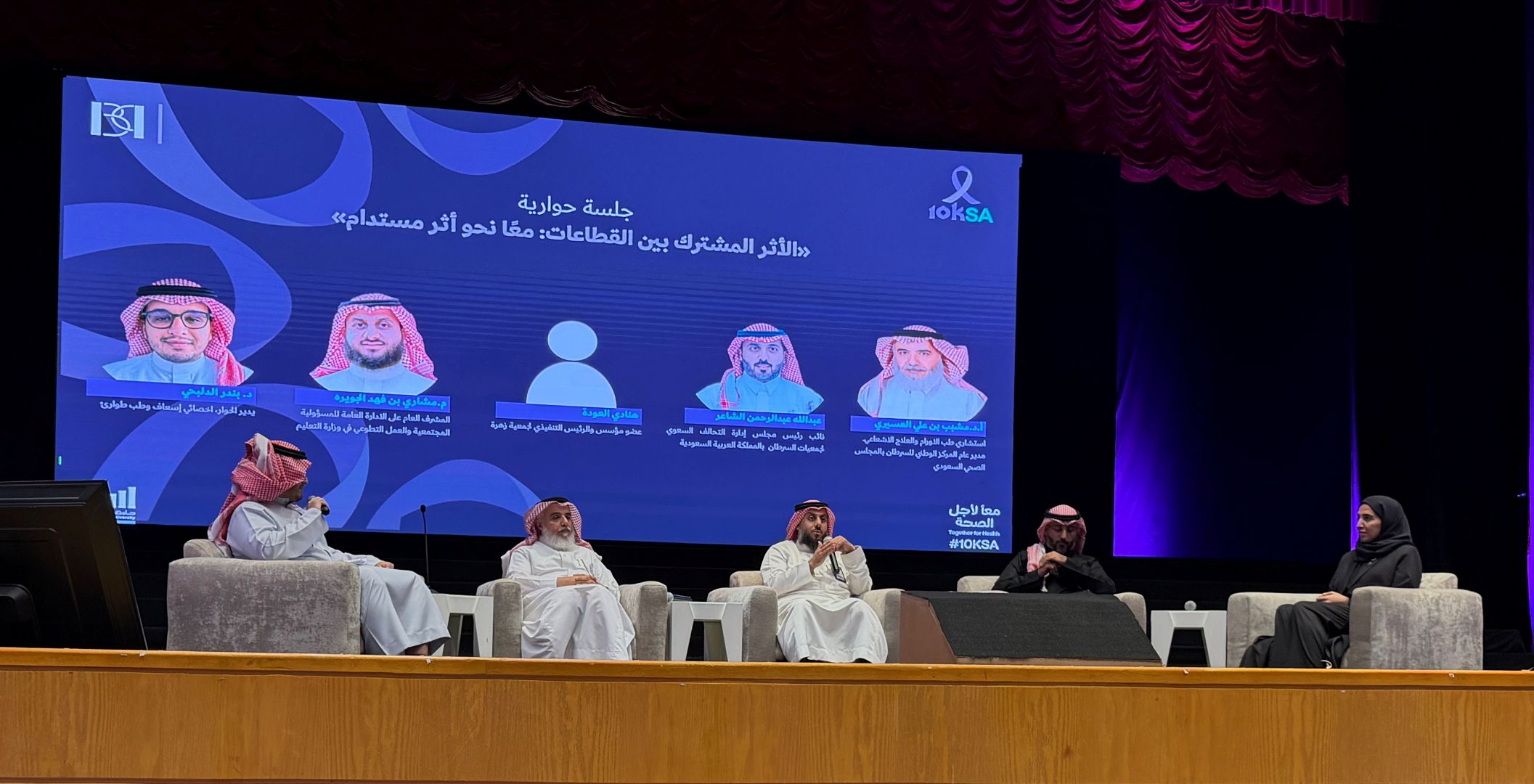 في جلسة حوارية بعنوان: "الأثر المشترك بين القطاعات: معًا نحو أثر مستدام" تم استضافة عدد المشاركين من قطاعات مختلفة لاستعراض أوجه التعاون بين القطاعات في الوقاية من السرطان وتبني أسلوب حياة صحي.