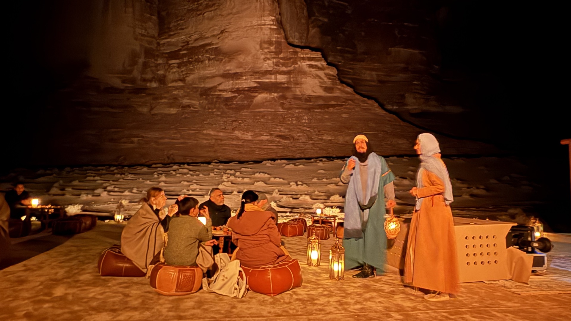 ضمن فعاليات المهرجان، قدّمت تجربة “أسرار النقوش القديمة” جولة مسائية على ضوء المشاعل، تأخذ الزوار بين الممرات الصخرية لجبل عِكمة، في أجواء تجمع بين سكون الطبيعة وسحر التاريخ.