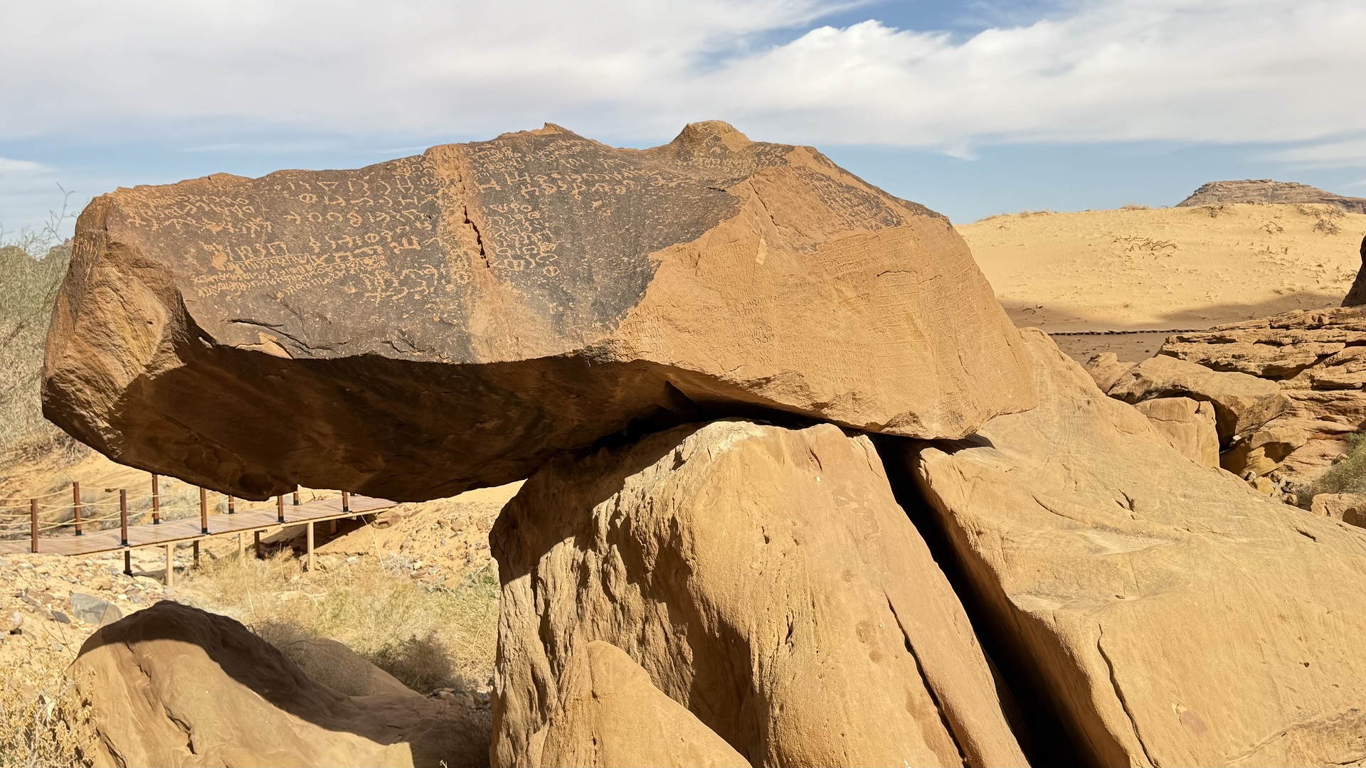 في مشهد استثنائي، يبرز جبل عِكمة بوصفه أحد أهم مواقع النقوش في الجزيرة العربية، حيث يحتضن آلاف النقوش والكتابات بلغات قديمة، منها الدادانية والثمودية والنبطية. وقد أُدرج الجبل ضمن برنامج ذاكرة العالم التابع لليونسكو، باعتباره سجلًا حياً لتطور اللغات القديمة وتاريخ الإنسان في المنطقة.