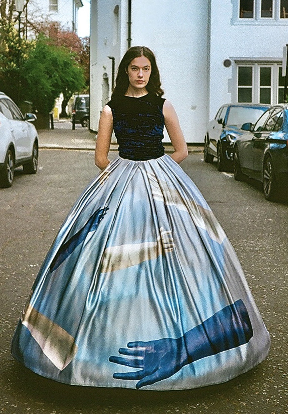 القصَّاتُ، تحملُ هذا المنحنى العاطفي، فهي حاسمةٌ في الشكل، ومرتبطةٌ بعمقٍ بالتجربةِ الإنسانيَّة، بينما تعكسُ التنانيرُ الفقاعيَّةُ التمدُّدَ العضوي للطاقةِ والحركة، وتتتبَّعُ طبقاتُ القماشِ الأحمرِ الشفَّافِ الجسدَ، كاشفةً هشاشتَه ورقَّتَه. ومع انفتاحِ المجموعةِ تدريجياً نحو ألوانٍ أفتح، تتطوَّرُ الأشكالُ أيضاً. داخل الإطلالاتِ الورديَّة، استخدمتُ دعائمَ ملتويةً لالتقاطِ التعقيداتِ التي نواجهها على الطريقِ نحو الأمل. تصبحُ الأشكالُ أكثر ليونةً، لكنَّها لا تزالُ بنيويَّةً في إشارةٍ إلى أن القوَّةَ، والرحمةَ، يمكن أن تحضرا في الوقتِ نفسه. وفي النهايةِ، تدورُ المجموعةُ حول إيجادِ الخفَّةِ داخل الثقل، والوضوحِ داخل الارتباك، والجمالِ داخل التناقض. أردتُ لكلِّ قطعةٍ أن تشعرَ وكأنَّها حيَّةٌ ومشحونةٌ عاطفياً. وكما هو الحالُ دائماً، تُصنَعُ الملابسُ حسبَ الطلب، وبشكلٍ أخلاقي في لندن من أقمشةٍ متبقِّيةٍ وجديدةٍ ومُعادٍ تدويرها. إن الإبداعَ الواعي في صميمِ عملي، وكلُّ اختيارٍ في المجموعة، يعكسُ هذا الالتزام.