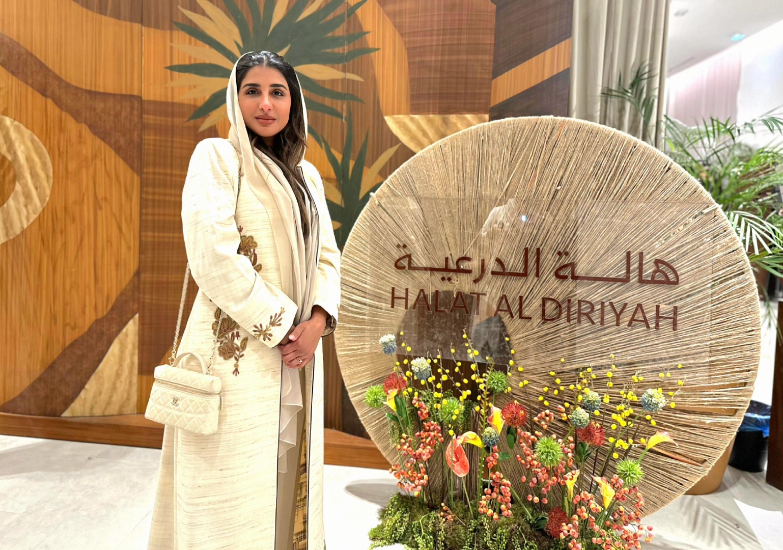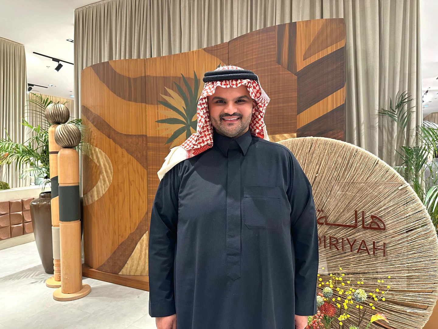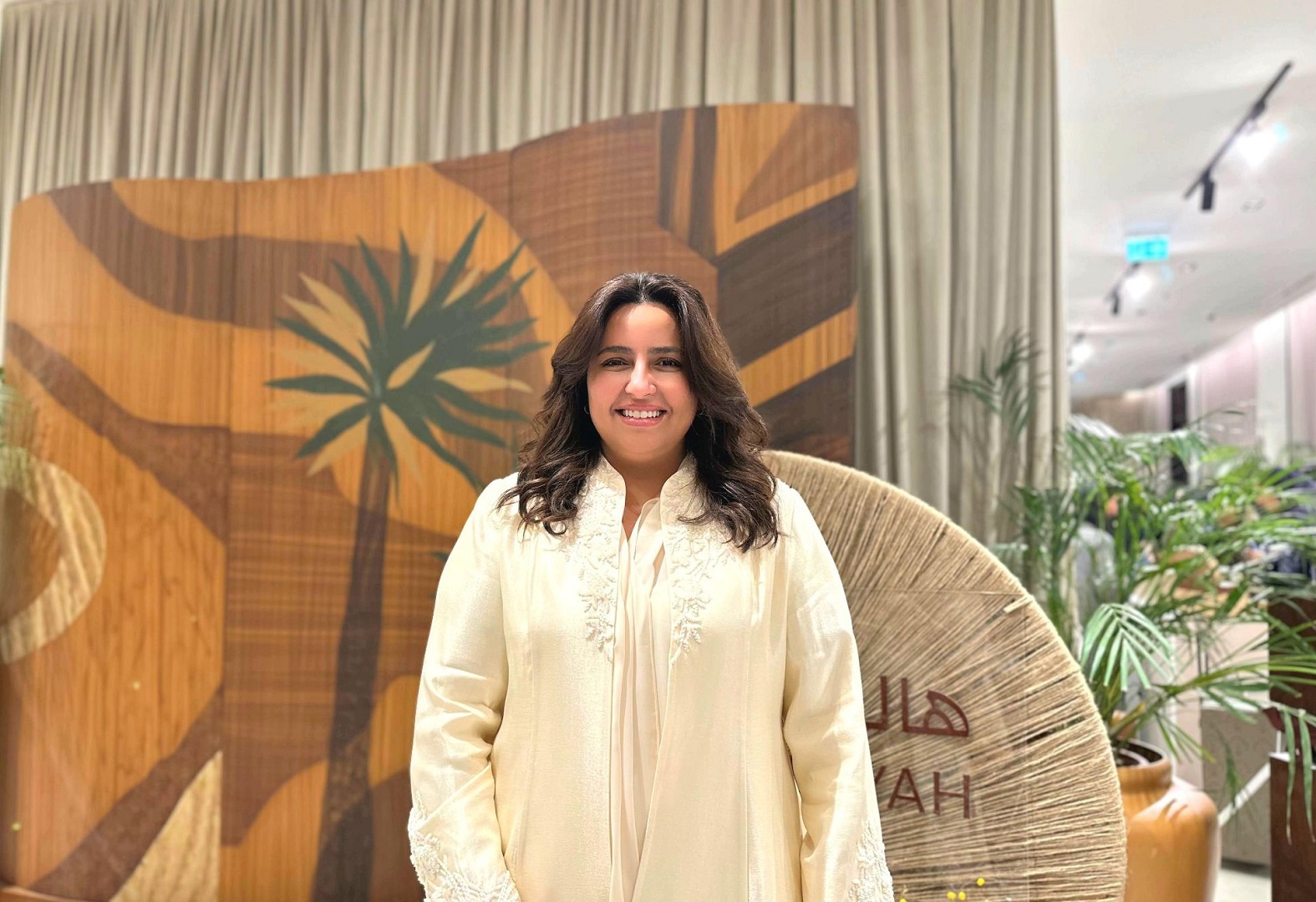 مصممة الديكور خلود العواجي، من المنظمين الرئيسيين لمعرض "هالة الدرعية"، تحدثت عن العناصر الرئيسية للهُوِيَّة البصرية لمعرض هالة الدرعية، مؤكدة أنها استلهمتها من روح الدرعية نفسها؛ من تاريخها، من الأرض، ومن تفاصيلها الأصيلة، وقالت: "العناصر التراثية كانت روح المعرض، وبالأخص النخل والإبل؛ لأنها تمثل عمق الهُوِيَّة السعودية، ووجودها أعطى المكان إحساساً بالانتماء، وربط الزائر بالذاكرة والهُوِيَّة بشكل مباشر، لكنني حاولت أن أعكس جمال التراث السعودي بأسلوب معاصر، فقدمت العناصر بطريقة حديثة تحاكي الذوق المعاصر وتحترم المكان في الوقت ذاته".