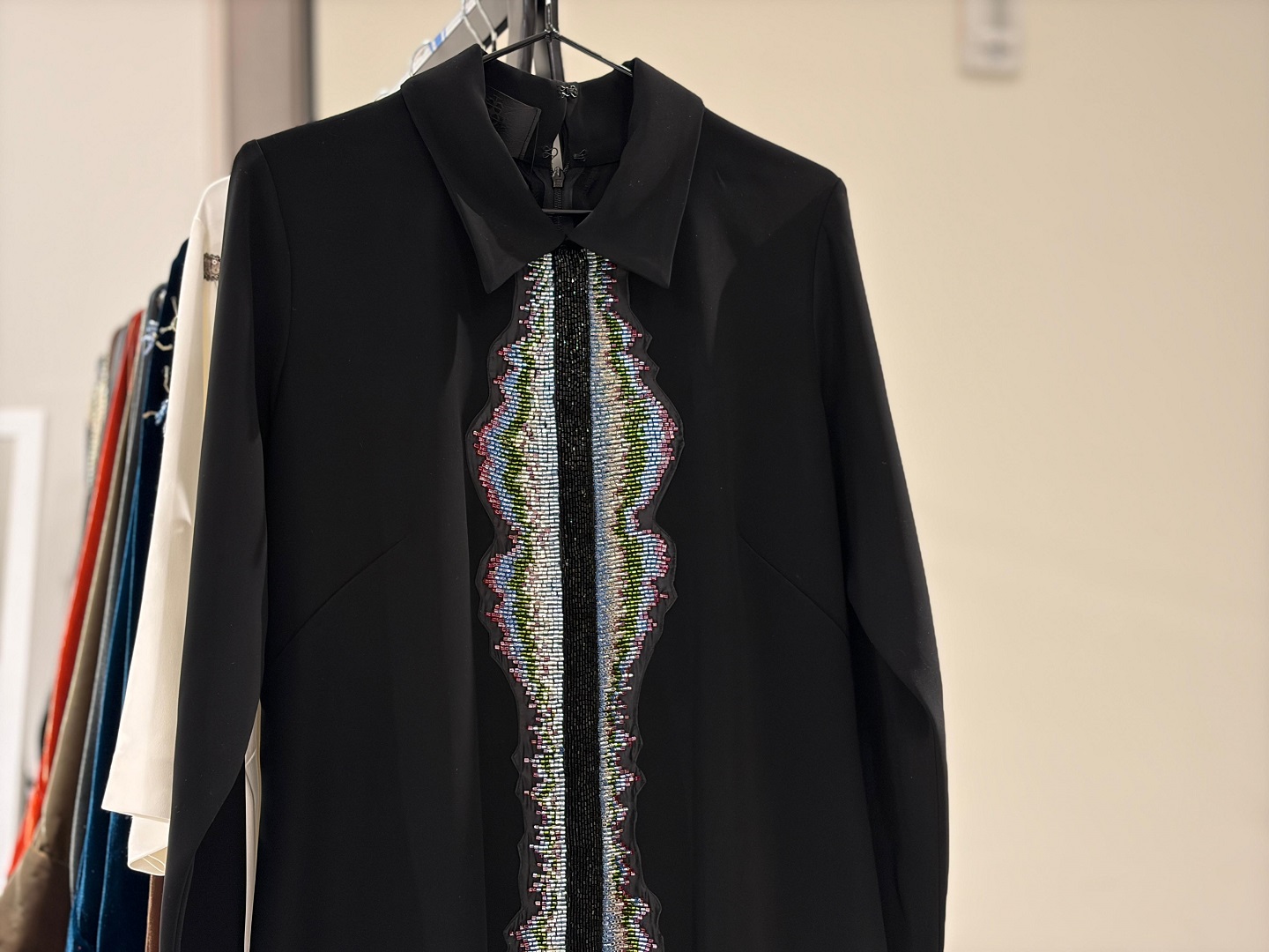 وحول ما إذا استوقفتها قصة ملهمة وراء إحدى القطع أو المجموعات المعروضة، أشارت المهنا إلى عمل المصممة ابتسام العنقري، التي ابتكرت أسلوباً فنياً عبر تحويل اسم علامتها التجارية إلى ترددات صوتية مطرزة على الجلابية بأسلوب فني مبتكر وجذاب، واصفة العمل بأنه مزيج ملهم بين الفن والإحساس.