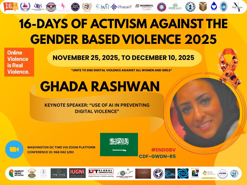 تشرفت بتمثيل المملكة العربية السعودية ضمن مبادرة الأمم المتحدة العالمية للتحول الرقمي (UN 16 Days of Activism Against Gender-Based Violence)، بالتعاون مع Global Women Development Network، حيث صممت استراتيجية رقمية شاملة مدعومة بالذكاء الاصطناعي لتمكين المرأة وحماية الفئات الأكثر احتياجاً، بما في ذلك ذوو الإعاقة (الصم، البكم، والمكفوفين)، عبر أدوات رقمية مبتكرة تم عرضها كنموذج رائد في الجلسات الختامية للمبادرة.