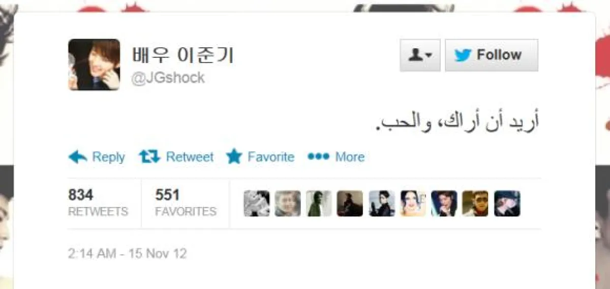 وتقول إيمان إنَّ الكوريين شعب يحترم الثقافات الأخرى كثيراً ويحترمون معجبيهم، سواء كانوا عرباً أو كوريين أو من أي جنسيَّة أخرى. فمجرد أن يعلموا بأنَّ لهم معجبين عرباً يقومون بشكرهم كثيراً ويعدونهم بأن يقدموا لهم أعمالاً تحوز على إعجابهم، ويعملون بجد وبجهد أكبر ليلتقوا بهم في المستقبل. تشاركنا أيضا تغريدتان نشرهما الممثل Lee-Jun-Ki باللغة العربيَّة وجههما للمعجبين العرب، ومن الواضح جداً أنَّه استخدم ترجمة «غوغل» لمساعدته في الكتابة، حيث بدت كلماته غير مفهومة نوعاً ما، لكنَّها بادرة ظريفة منه. يقول فيها «أريد أن أراك، والحب». تقول إيمان إنَّه ربما كان يقصد أنَّه يريد أن يلتقي بالمعجبين العرب وبأنَّه يحبهم. أتبعها بتغريدة أخرى «رسائل صعبا للغاية. يوما ما سوف نلتقي بكم».