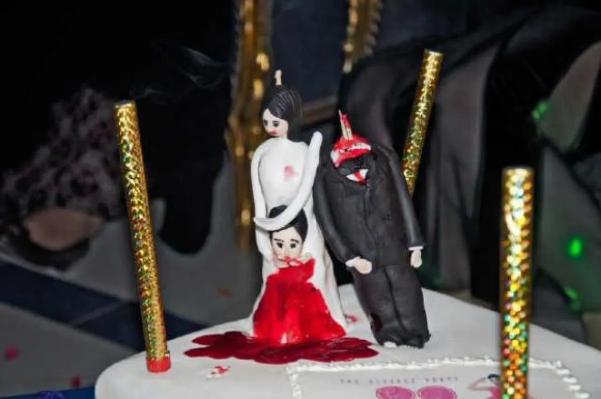 فأقامت حفلاً أدهش الجميع باستعداداته والذي ينم عن فرحة صاحبته بهذا الحدث وأنه مناسبة سعيدة بالنسبة لها، وذلك بدءاً من فستانها الأشبه بفستان الزفاف ولكن باللون الأسود، والكعكة الكبيرة التي تضمنت مجسماً لعروس وعريس بجانبها ولكن من دون رأس، وانتهاء برمي باقة الأزهار لمن يقف خلفها، "كتلك التي تلقي بها العروس يوم زفافها لفتيات يقفن خلفها، ومن تلتقط الباقة تكون صاحبة الحظ السعيد بحفل الزواج التالي".