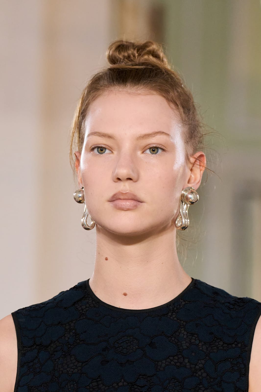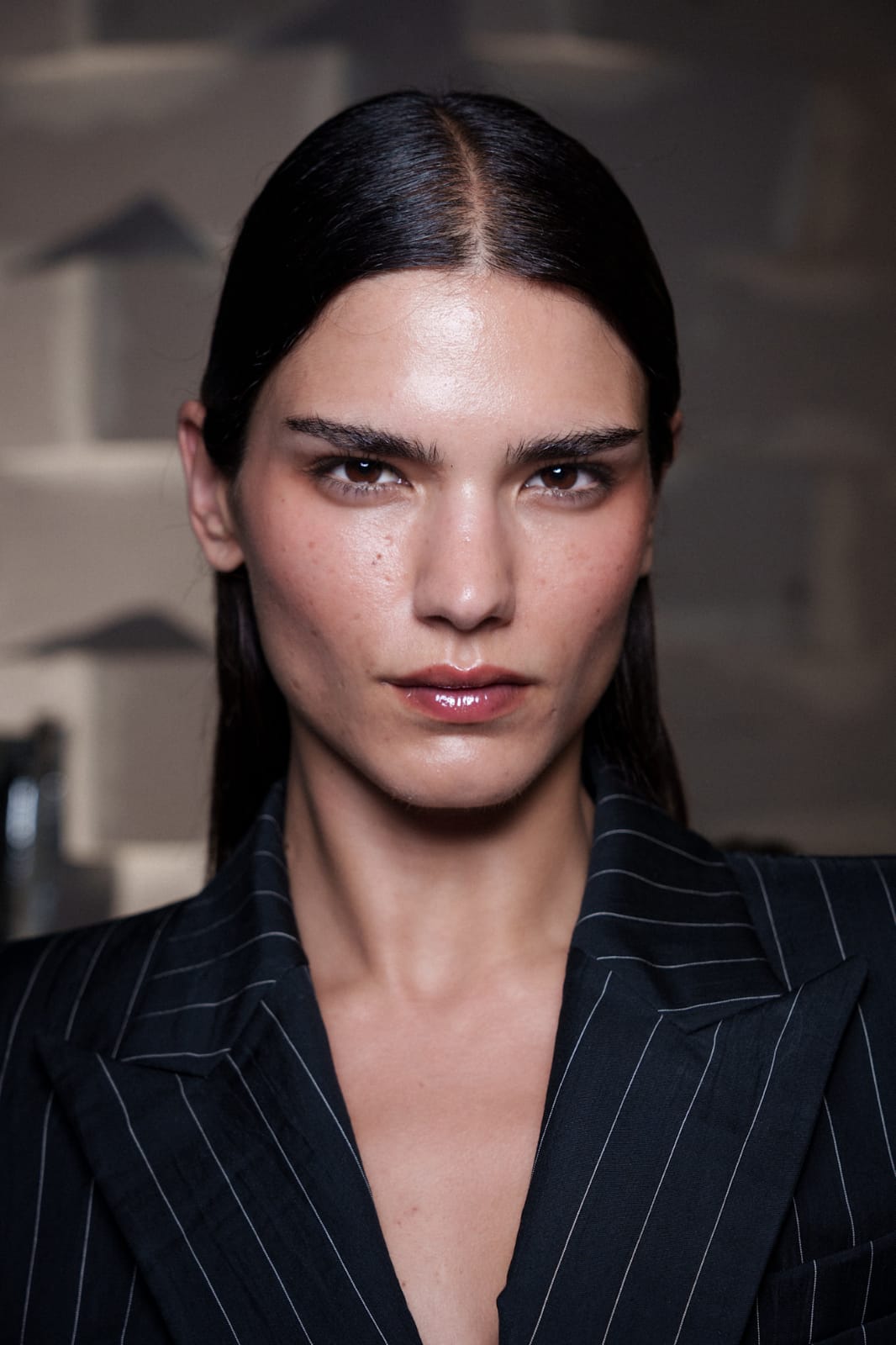 تسريحة شعر تعتمد على فرق أوسطي ناعم مع ترتيب الخصلات بإتقان خلف الأذن، لتمنح الوجه مساحة أكبر من الوضوح والجاذبية. هذه الإطلالة تعكس أسلوباً أنيقاً، بسيطاً، ولافتاً في الوقت نفسه، حيث يمتزج فيها الرقي مع اللمسة الطبيعية. إنها مناسبة للمناسبات الراقية بقدر ما تلائم الإطلالات اليومية العصرية، ما يجعلها خياراً متعدد الاستخدامات.