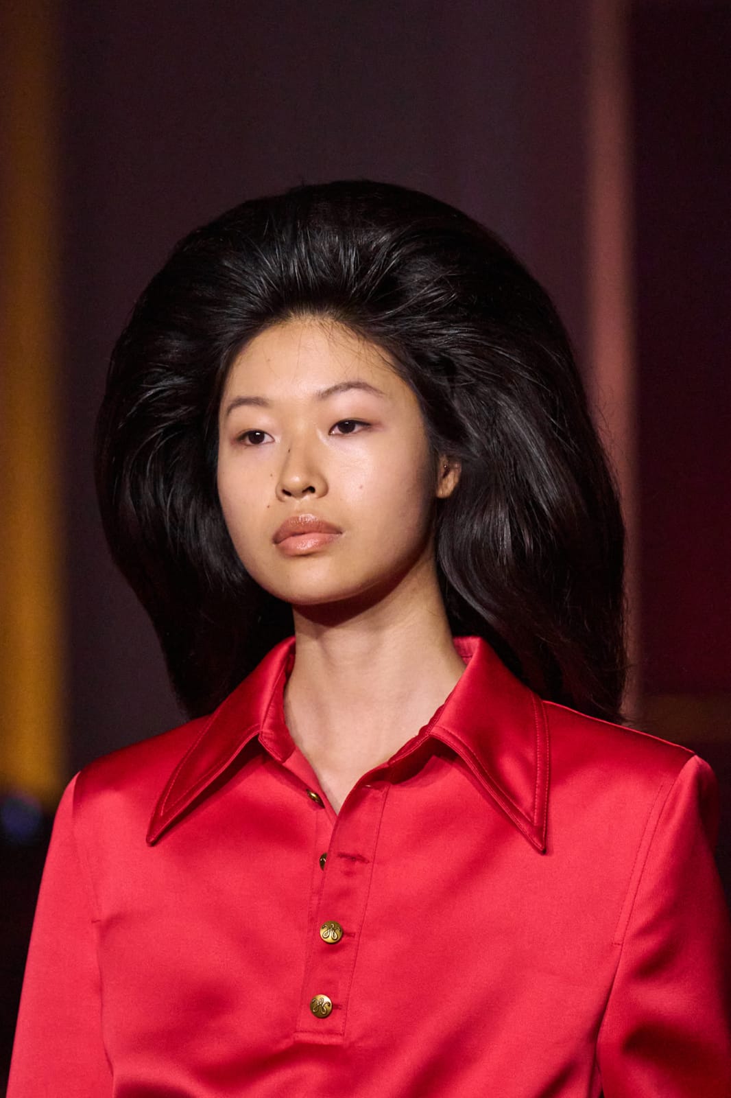 إطلالة لافتة تقوم على رفع مقدمة الشعر بأسلوب بومبيه دائري يعطي حجماً مميزاً من الأمام. ينسدل الشعر من الخلف بحرية على الظهر، في مزيج متناغم بين الجرأة والأنوثة. هذه التسريحة تحمل طابعاً ملوكياً وتمنح المرأة حضوراً قوياً على المسرح أو في المناسبات الكبيرة، إذ تجمع بين الكلاسيكية والفخامة بلمسة عصرية أنيقة.