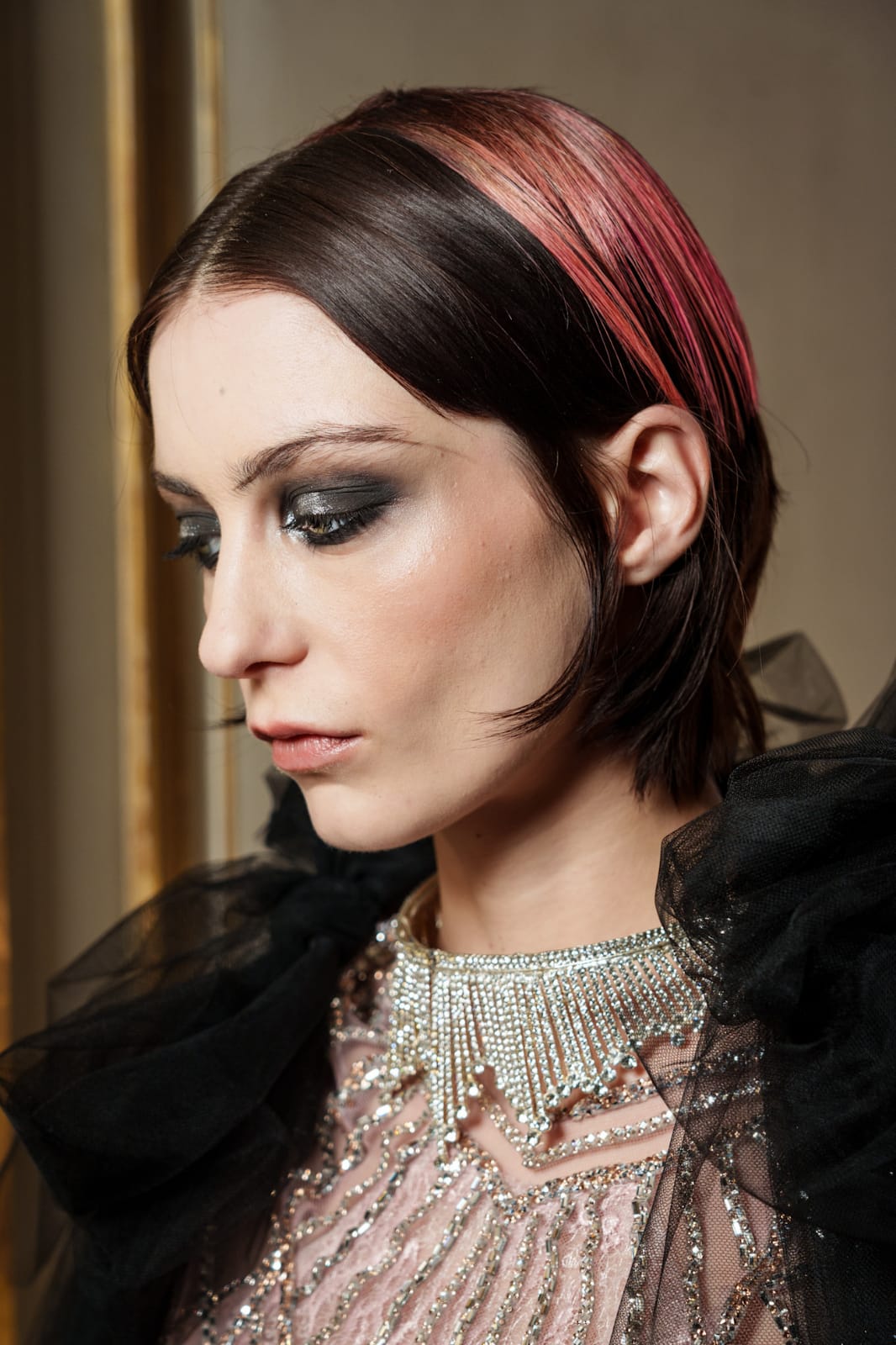 صبغة البني الغامق مع لمسات وردية لإطلالة جريئة