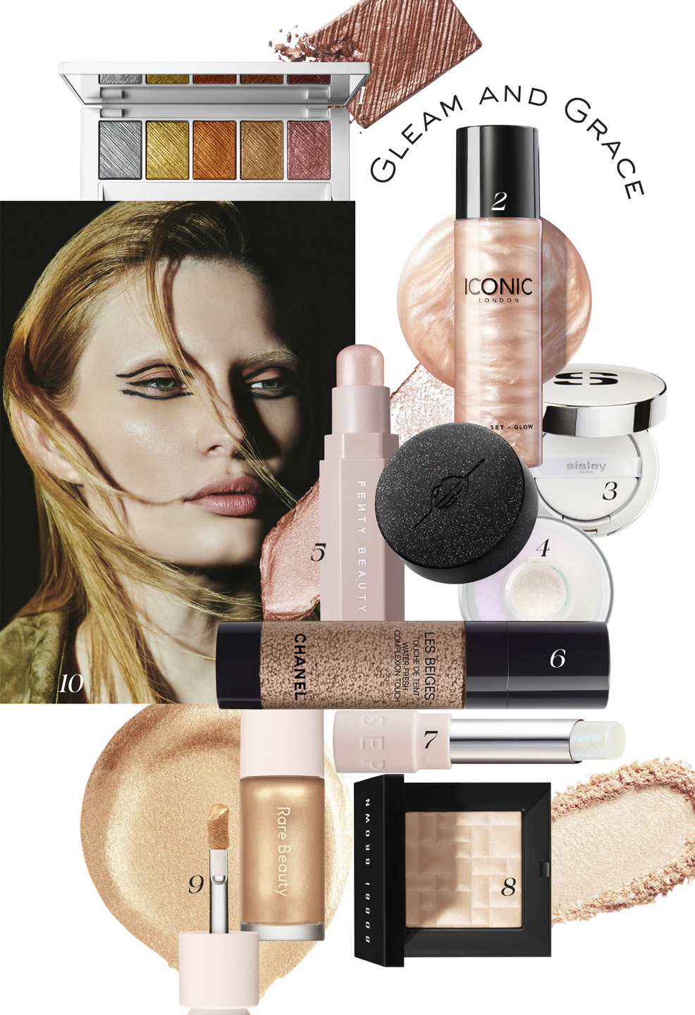 • تمنحُ الإشراقةُ اللؤلؤيَّةُ الوجه بريقاً متناسقاً. يمكن استخدامُ هايلايتر معدني لإبرازِ ملامحِ الوجه بطريقةٍ أنيقةٍ، مع اختيارِ الدرجاتِ المناسبةِ لجميع ألوانِ البشرة، سواء لمظهرٍ طبيعي، أو لمعانٍ معدني جريء.