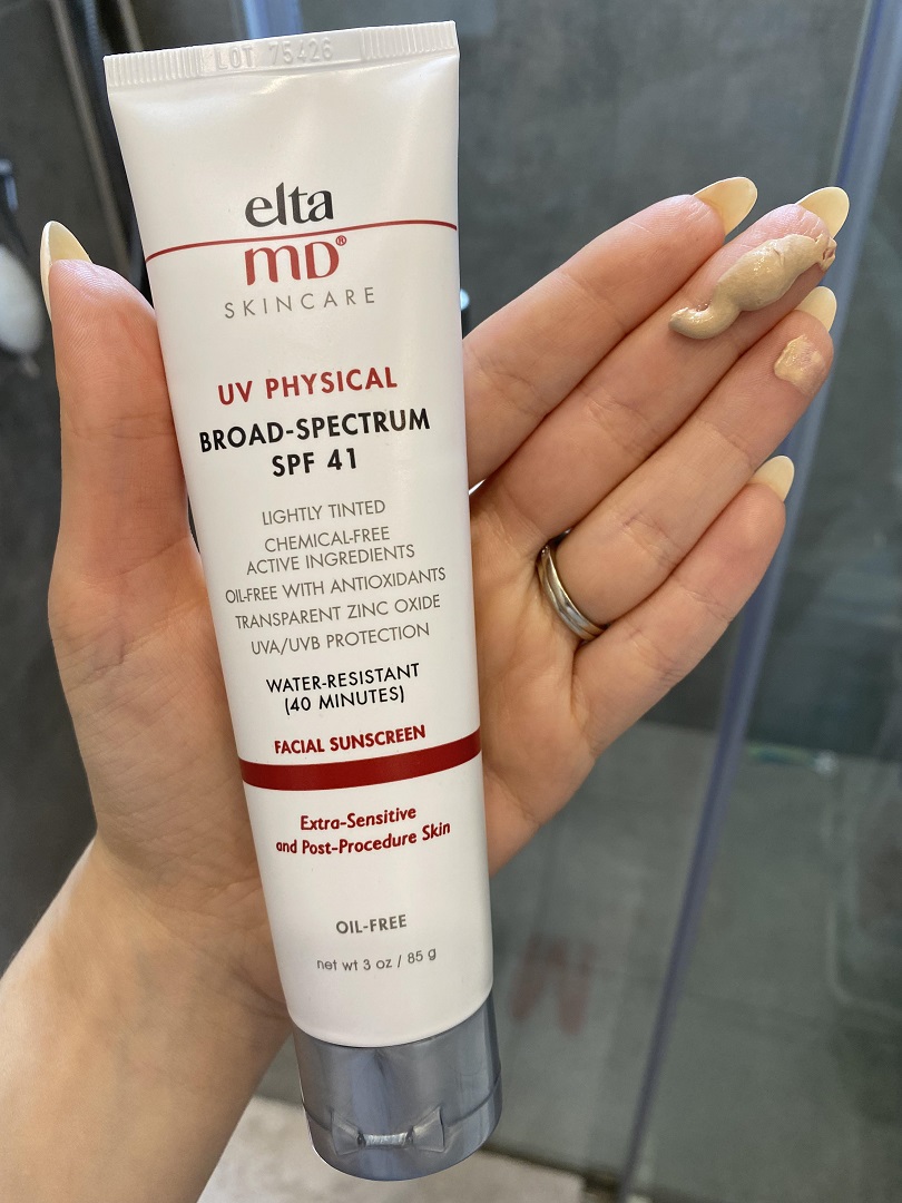 مثال: EltaMD UV Physical Broad-Spectrum SPF 41 مناسب للبشرة الحساسة بعد التقشير.