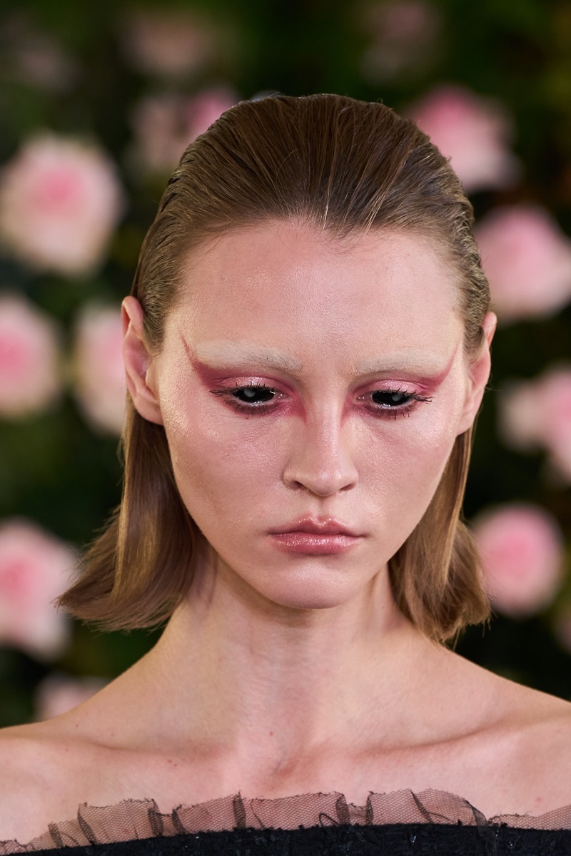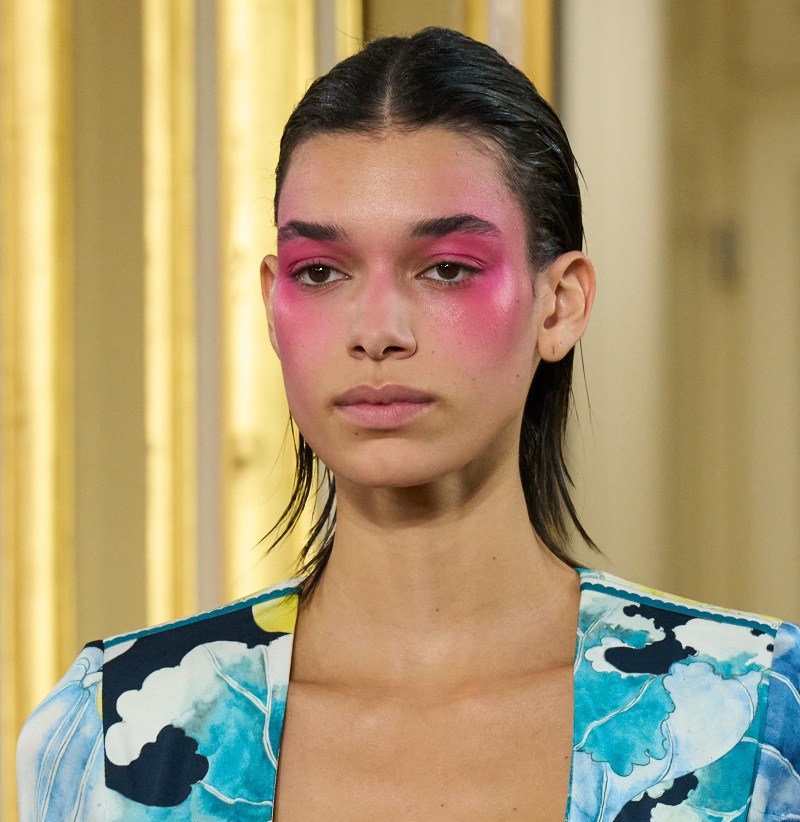 في عرض دار كريستوف غيلارمي Christophe Guillarmé ضمن أسبوع الموضة في باريس لربيع وصيف 2026، برزت صيحة المكياج الوردي المشرق، فبدت العيون لافتة بظلال وردية ممتدة حتى الحواجب، لتمنح النظرة طابعاً فنياً مبتكراً يعكس حيوية الموسم، فيما ازدادت الملامح نعومة مع شفاه وردية لامعة وبشرة طبيعية مضاءة بلمسات خفيفة من الإشراق.