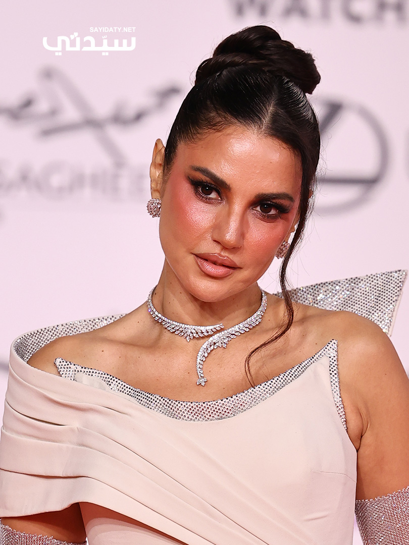 بدورها، تألقت سلمى أبوضيف بإطلالة راقية ومشرقة في آن، إذ اختارت مكياج نيود بتدرجات ترابية ناعمة مزيّنة بلمسة فضية خفيفة عند منتصف الجفن وزاوية العين الداخلية، منحتها إشراقة مميزة تحت الأضواء. واعتمدت تسريحة كعكة الباليرينا العالية التي عكست ملامحها الناعمة وجعلت مظهرها مثالياً للسجادة الحمراء.