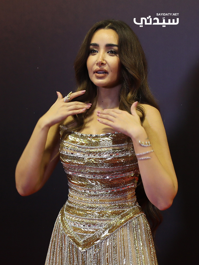 هنا الزاهد بمكياج ذهبي وتسريحة الشعر المموج المنسدل