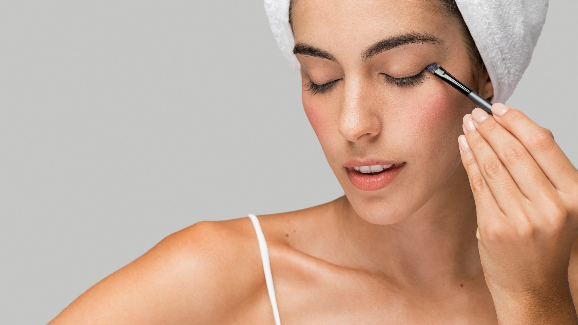 • ضعي كريم عين خفيفاً غير زيتي وامنحيه دقيقة ليمتص.