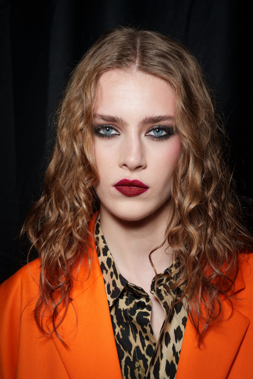 في هذه الصيحة، يظل أحمر الشفاه القرمزي الداكن هو العنصر الأبرز، يمنح الإطلالة قوة وأناقة لافتة. ويمكن زيادة الكحل حول العينين بخط أوضح على الجفن العلوي ولمسة خفيفة أسفل العين، ليعزز عمق النظرة، ويمنحها طابعاً أكثر جرأة من دون أن يطغى على الشفاه.