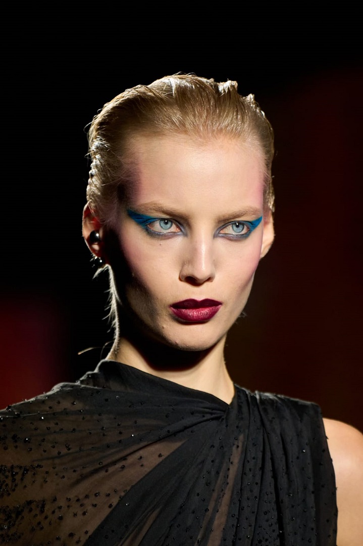 أما الظلال الزرقاء، فهي عنوان الجرأة الراقية هذا العام. لم تعد محصورة في أسلوب واحد، بل تتنوع بين التدرجات الناعمة التي تذوب على الجفن، والدرجات القوية التي تستخدم كلون أساسي لإبراز العين بالكامل. يمكنك دمج الأزرق مع ألوان حيادية للحصول على توازن أنيق، أو اعتماده وحده بأسلوب جريء يعكس ثقتك بنفسك. كما أن اللمسات اللامعة من الظلال الزرقاء أصبحت خياراً مثالياً لإضاءة العين وإبرازها بطريقة جذابة.