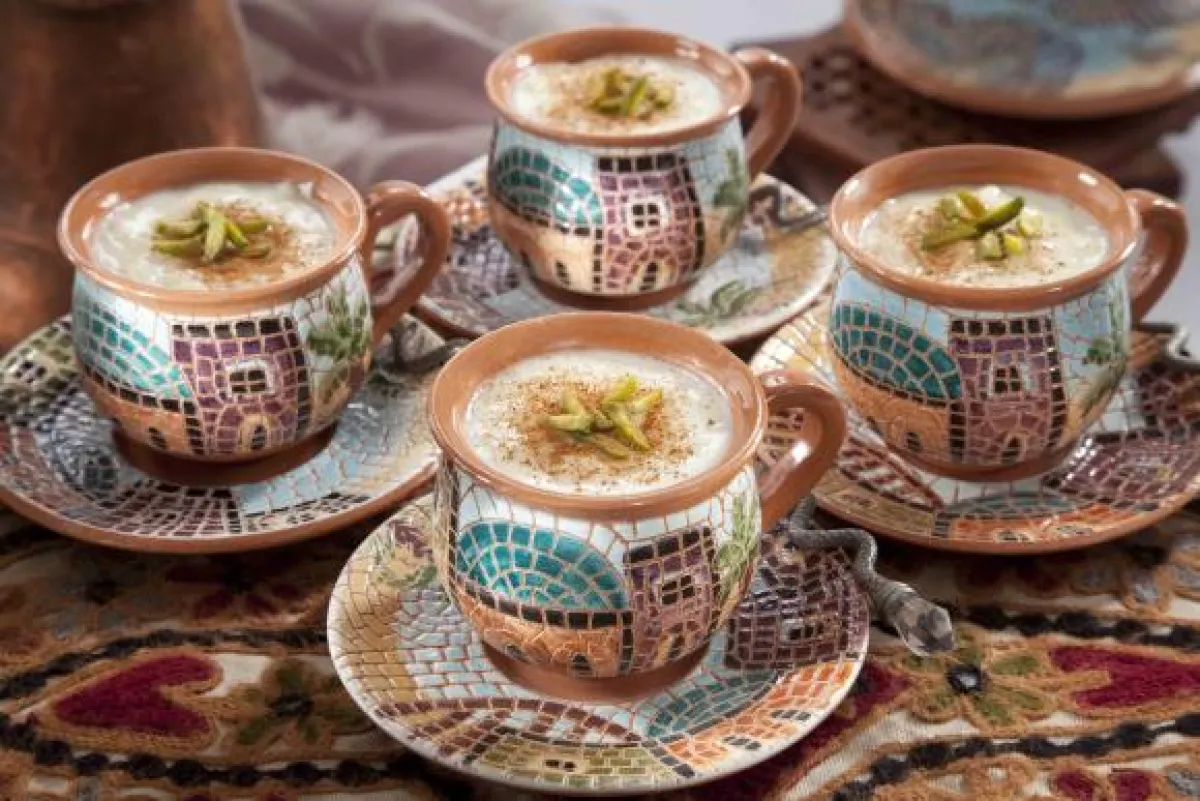 للتقديم: فستق حلبي وقرفة.