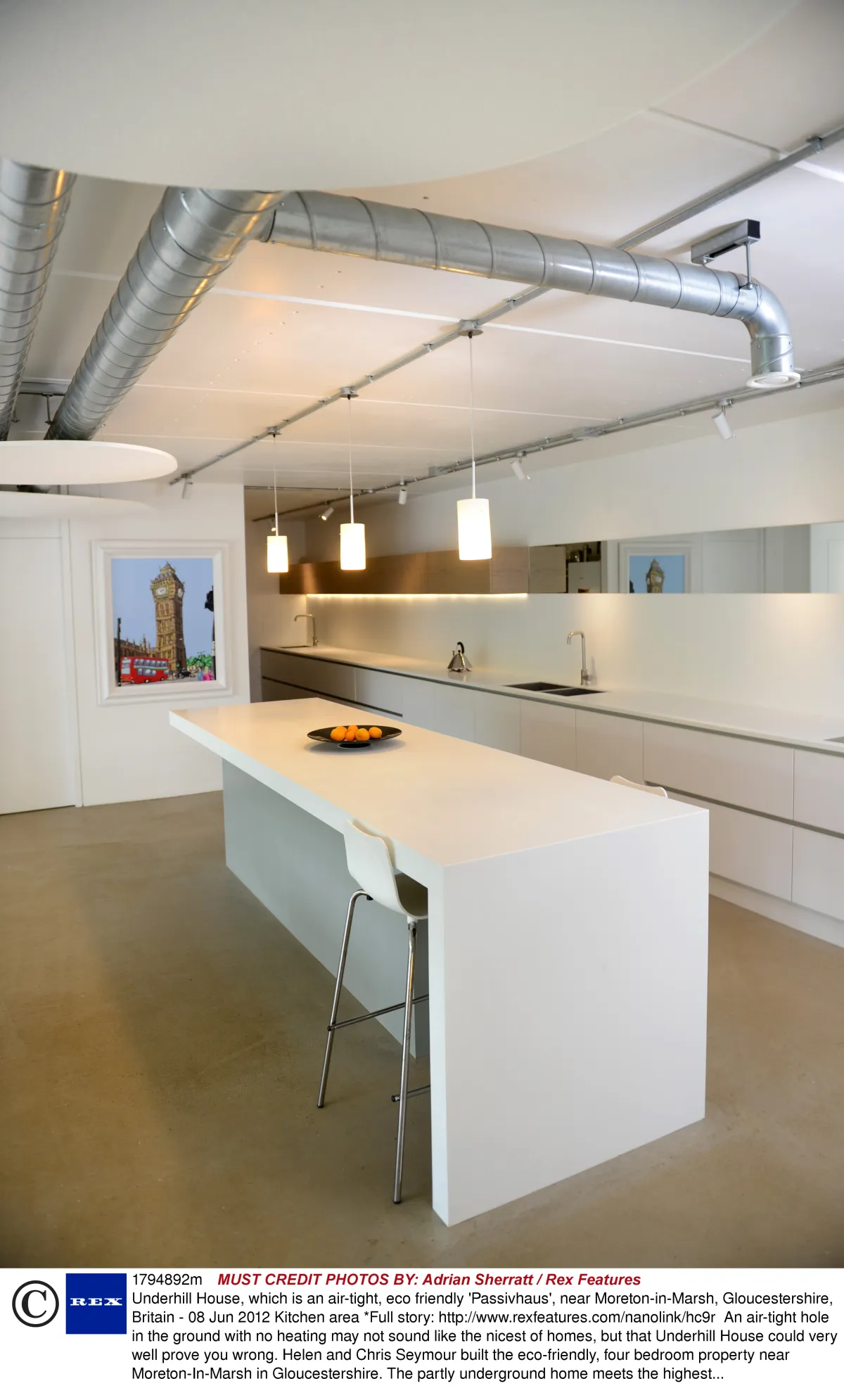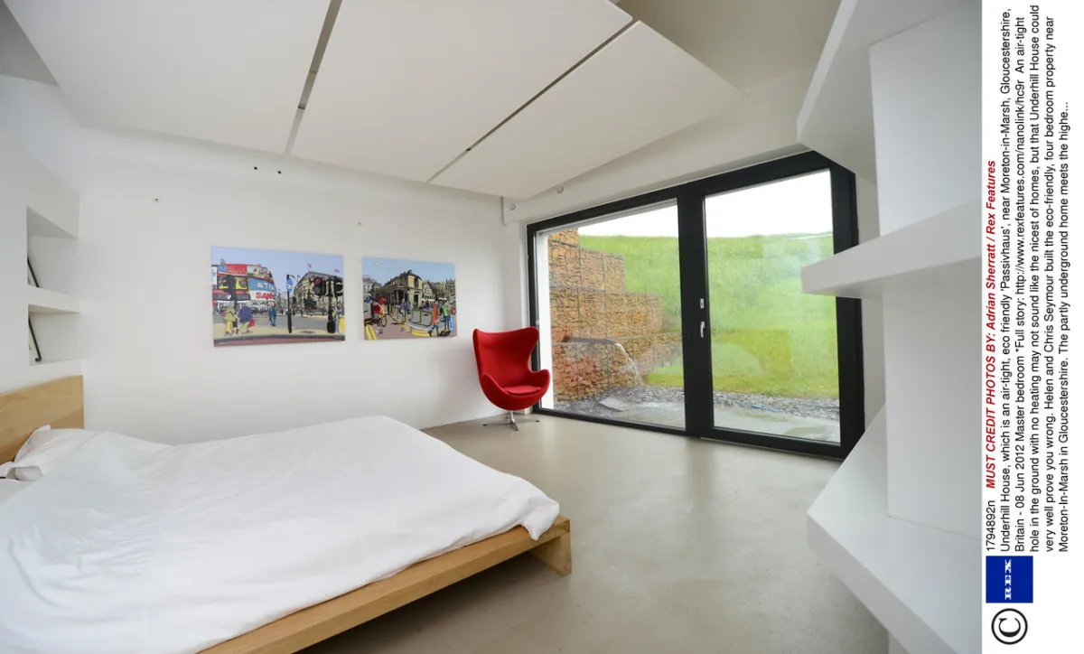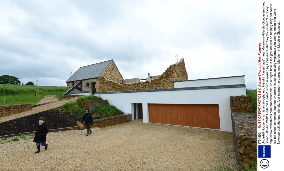 المنزل، الذي يعتبر "تحت الارض"، يتوافق مع أعلى المعايير البيئية، ويصنّف على أنّه موفّر للطاقة.يحتاج إلى قليل من التدفئة، وقد لا يحتاجها نهائياً لأنه يحفظ الحرارة في الشتاء، وفي الصيف يبقى بارداً.ولكن في الواقع، وعلى قدر استثنائيته في حفاظه على الهواء، فإن مقدار "تسريبه" له يعادل حجم كرة الاسكواش، علماً أن أنظمة البناء لمنزل عادي بنفس الحجم تسمح بثقب بحجم كرة القدم!