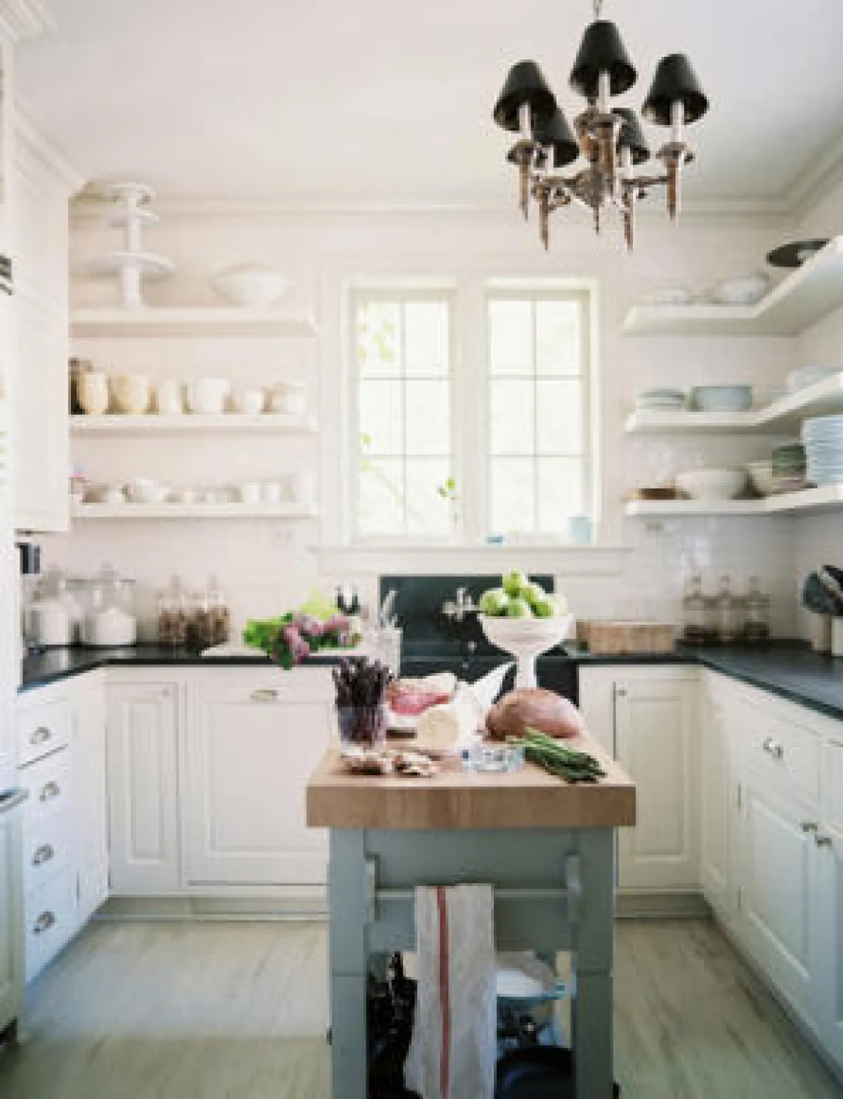 يُمكنك إزالة أبواب خزائنك العلويّة وطلاء الخزائن السفليّة بلون جديد.وعلى الرّغم من بعض سيئات الرفوف المفتوحة، إلا أنّها رائجة جدّاً، ومن حسناتها أنّها تجعل المطبخ الصغير يبدو أكبر، فيما تُسهّل للمرأة ترتيب الأواني.