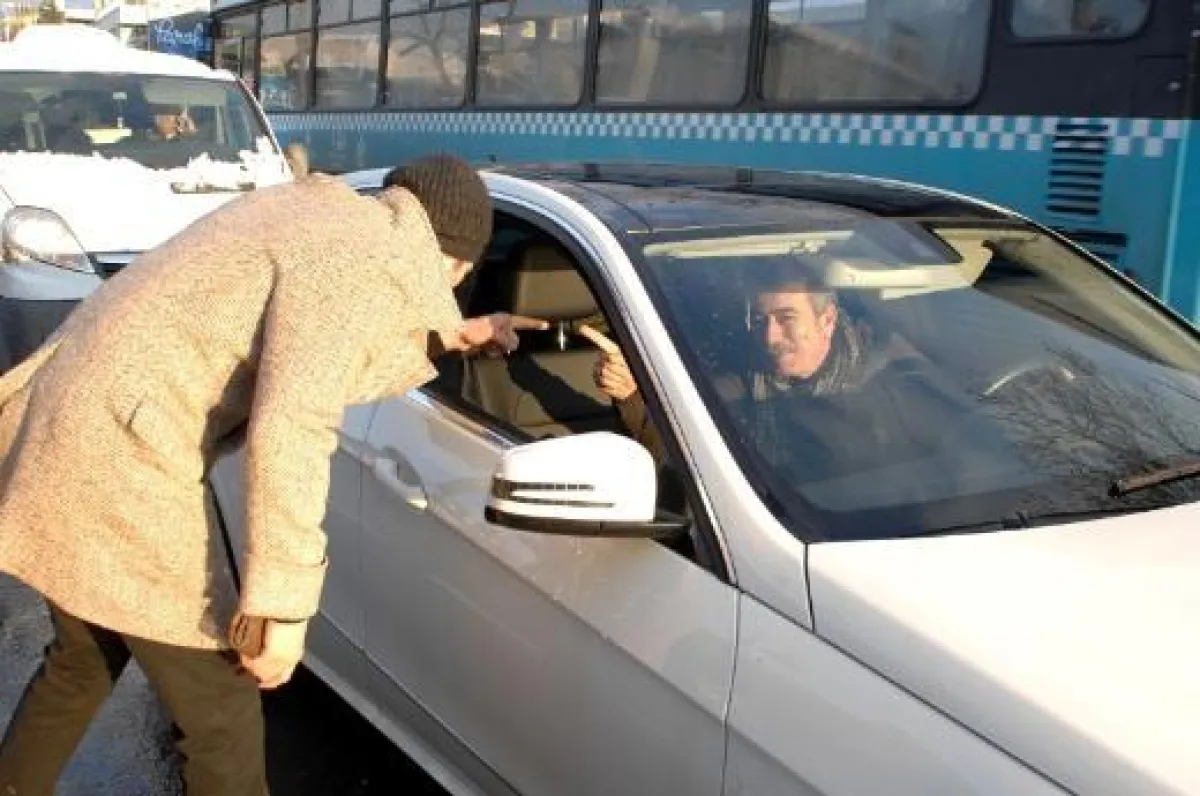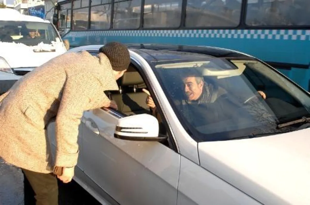 وما هي الا دقائق حتى وقفت سيارة قربه يقودها النجم الكبير سلجوق يونتوم الشهير بشخصية "عدنان بيك" في مسلسل "العشق الممنوع"، والذي ادى به دور عم مهند.