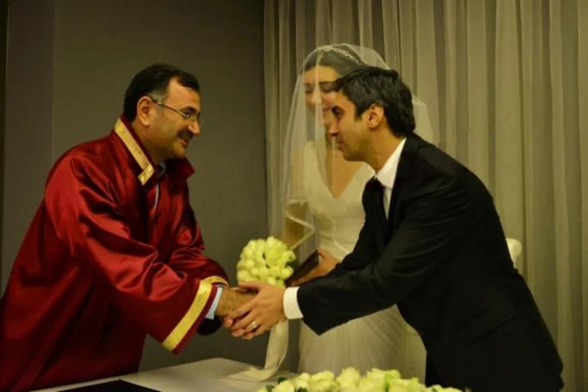 وشهد على عقد القران صديقاه فاتح حلمي أوغلو وجونيت آيسان.ولم يحضر نجوم سلسلة "وادي الذئاب" خاصةً ميماتي وعبد الحي.وحازت العروس الجذابة بفستانها البسيط الأنيق إعجاب الحضور،والتقطا معاً صوراً تذكارية لتوقيع عقد القران وتمّ تسريب الخبر للصحافة التركية في وقت متأخر ليلاً ولم ترصده الفضائيات ولا مصورو الباباراتزي ،ويعدّ شاشماز أبرع نجم تركي يجيد التكتم على حياته الخاصة. فلم ترصده كاميرات الباباراتزي يوماً في مكان عام غير لائق مع حبيبته السابقة الممثلة نور فاتح أوغلو الشهيرة بالسلطانة ناهد دوران الذي أعلن قبل أسابيع بوضوح أنه لن يتزوجها،وأكد ما أعلنه قولاً بالفعل من خلال هذا الزواج السريع والمفاجىء الذي تمّ بسرية تامة في تاريخ غير عادي يحلم به كل عشّاق العالم. السرية البالغة ليست غريبة على شخصية مراد علم دار ولا على نجاتي شاشماز الذي أكد في تصريح خاص للمقربين منه حين سألوه عن مصير علاقته بنور فاتح أوغلو أن علاقته بها كانت من أجل العمل،ولم يعد يوجد شيء بينهما،وأصبحت من الماضي من فترة.وقد تقبّل تهاني محبيه وأصدقائه قبل مغادرته مع عروسه لقضاء شهر العسل.واشتعلت مواقع التواصل الاجتماعي بآلاف التهاني المرسلة له من محبيه ومعجبيه حول العالم.