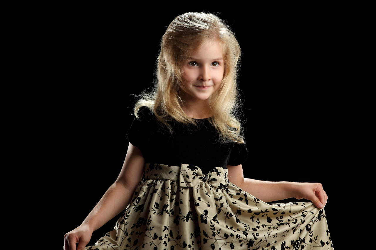 الفستان مصنوع من قماش الساتان الفاخر في الجزء السفلي بلون بيج مزخرف بنقوش سوداء على شكل ورود وأغصان رقيقة، ما يمنحه مظهراً أنيقاً ومناسباً للمناسبات الخاصة. الجزء العلوي من الفستان من قماش مخملي أسود ناعم يضفي لمسة فخمة وراقية، بينما يبرز الرباط الكبير عند الخصر ليُبرز تفاصيل القصة ويمنح الفستان طابعاً طفولياً جذاباً.