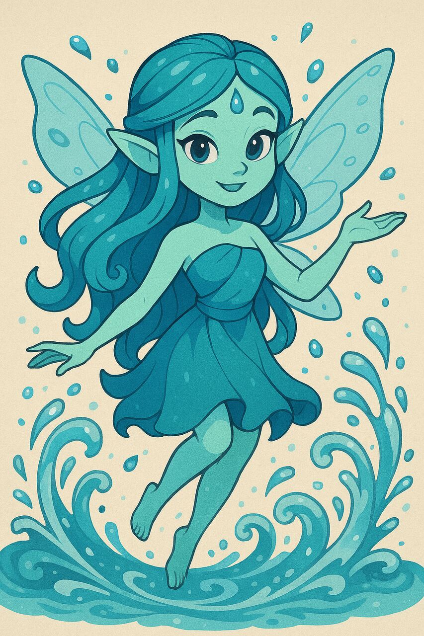 باهتمام، لمست مايا القطرة برفق، ولدهشتها، عادت للحياة! تحولت قطرة الماء إلى مخلوق صغير متلألئ بأجنحة لامعة- عفريت ماء يُدعى قطرة الندى. كانت ممتنة للمسة مايا، تحدثت بصوتٍ رقيقٍ ولطيف: "شكراً لإيقاظي يا صديقتي العزيزة. أنا حارس عالم الماء، وأُهديكِ هديةً مميزةً نظير لطفكِ".