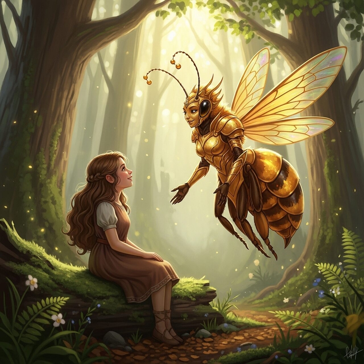 قالت ملكة النحل بصوتٍ عذبٍ كالعسل: "أهلاً يا صغيرتي العزيزة، أحتاج مساعدتك. حديقتنا في خطر، ولن ينقذها إلا مَن يملك قلباً طيباً وحباً للطبيعة".