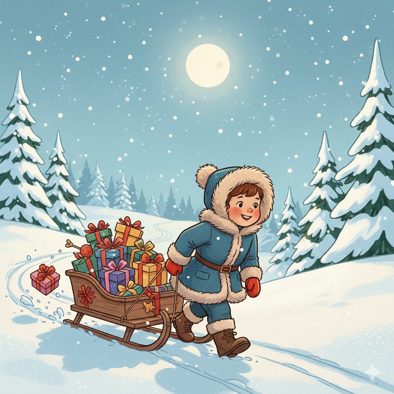 أجاب صوتٌ رقيق: "أنا هو. أنا رأس السنة الصغيرة، هو هو! وقد وعدتُ أن أجلب البركة للجميع. لكنني صغيرٌ جداً، لذا أحتاج إلى من يساعدني في توزيعها. ألا يمكنك الخروج والمساعدة؟"