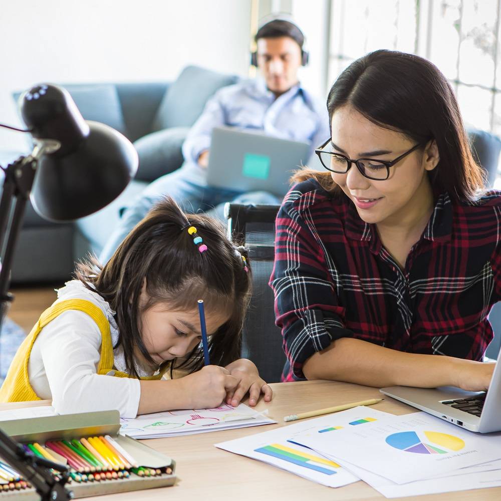 أم تتابع -بانتظام- طفلتها في عمل الواجب المدرسي