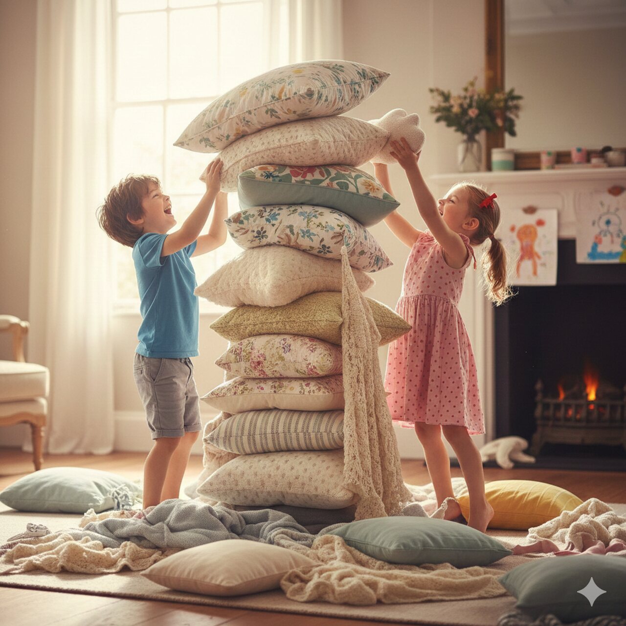 لعبة تحول الوسائد إلى جبال - الصورة من ابتكار الذكاء الاصطناعي